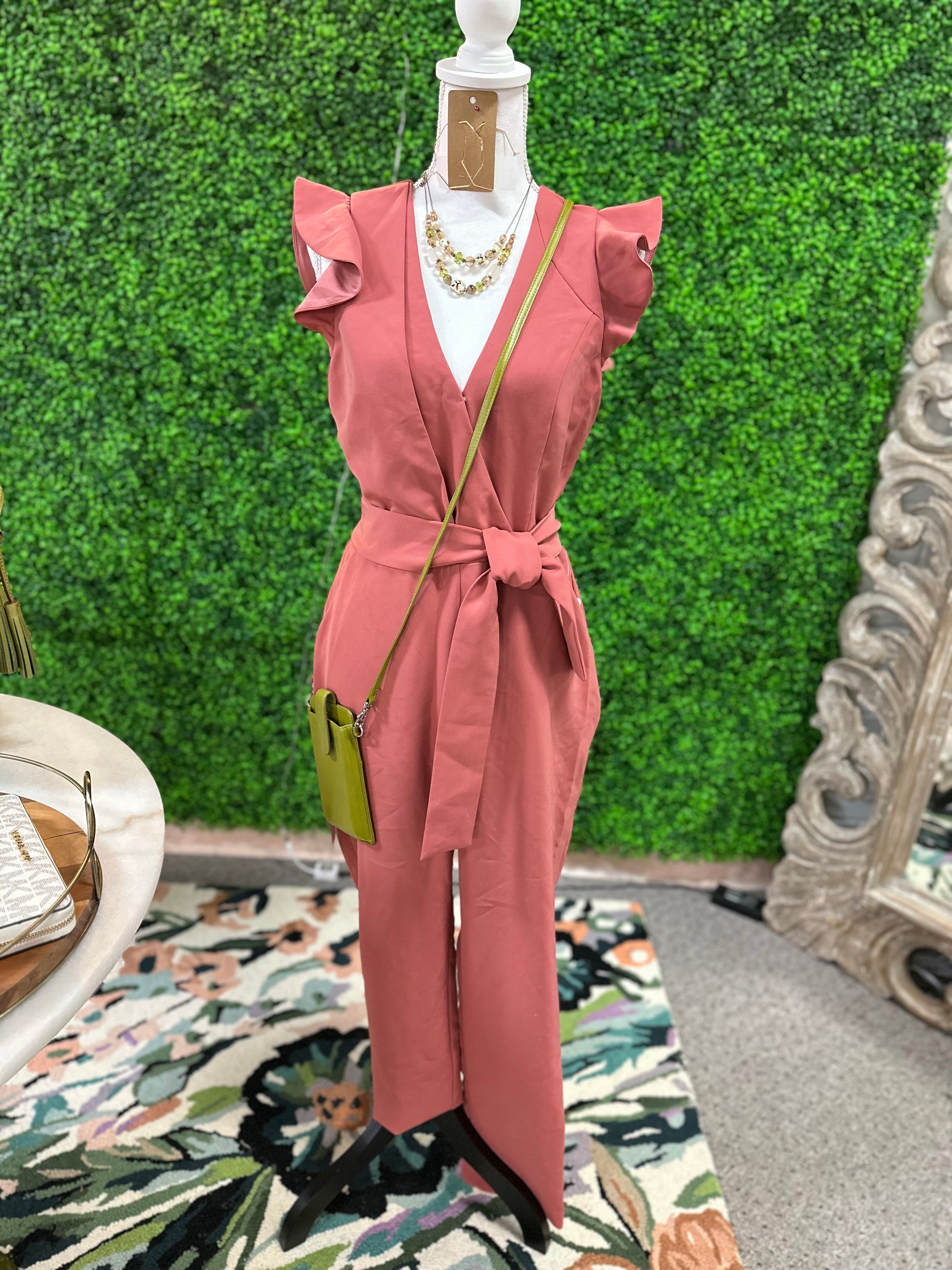 Adelyn rae Jumpsuit/ss ruffles/belt