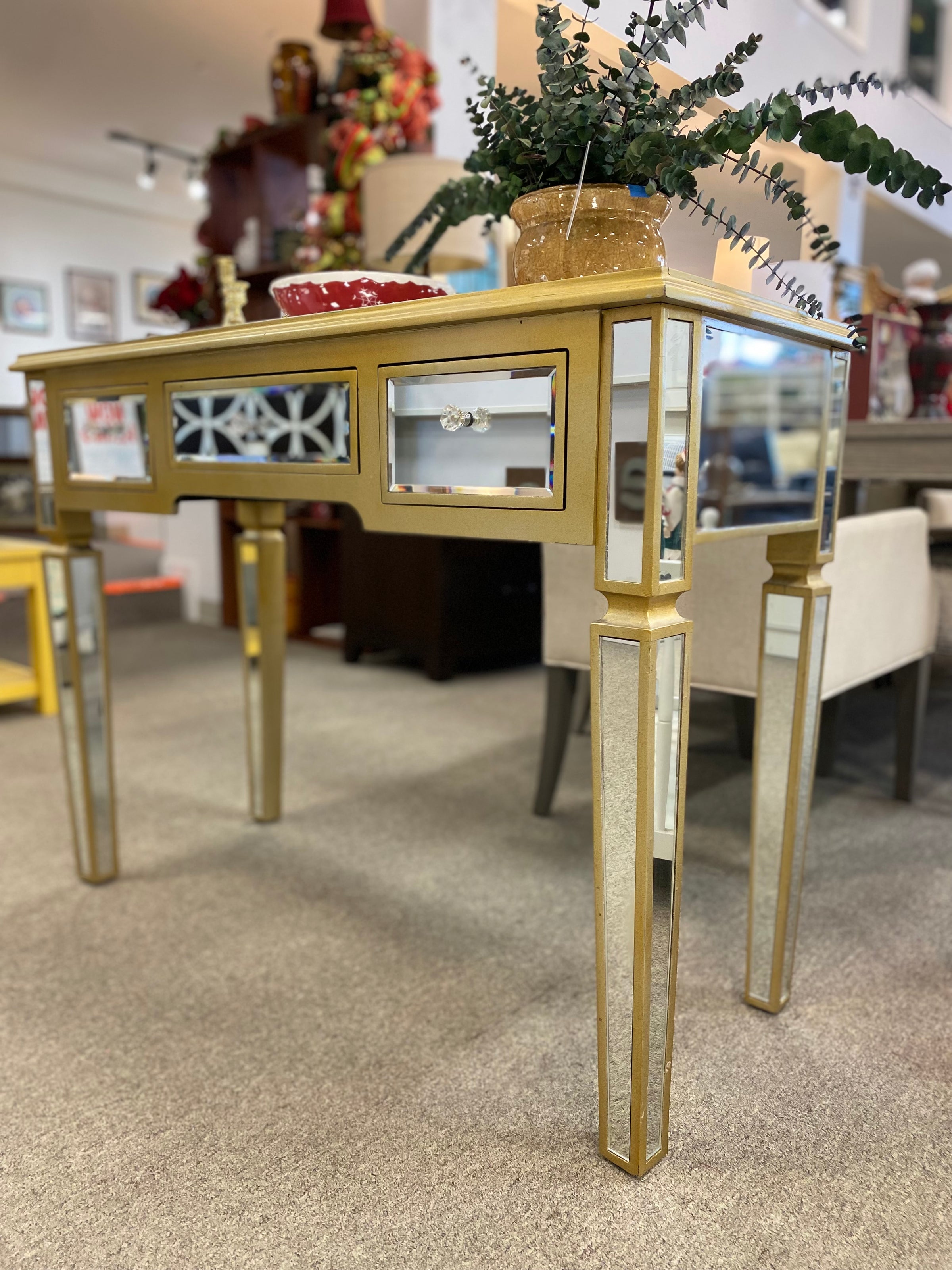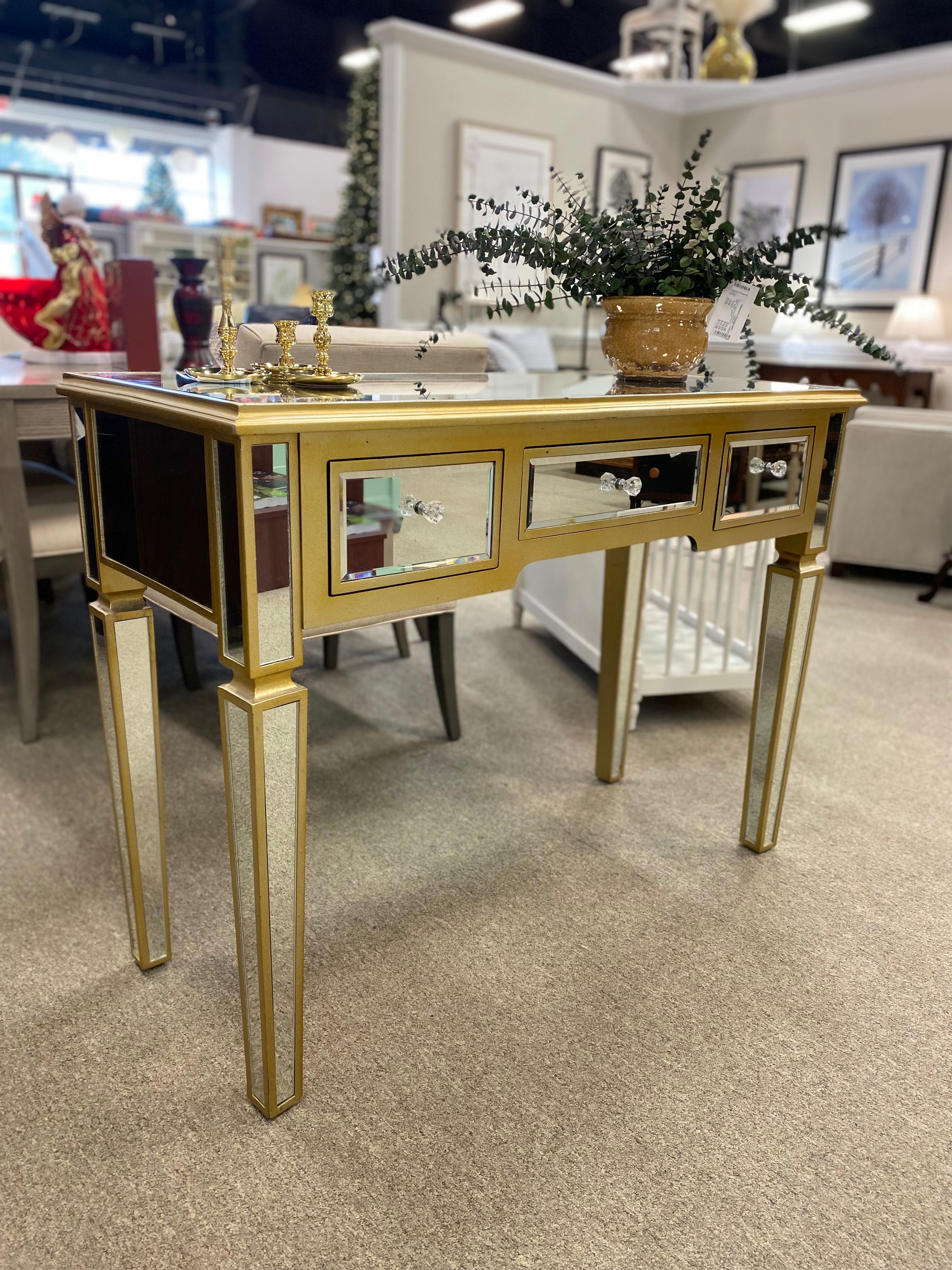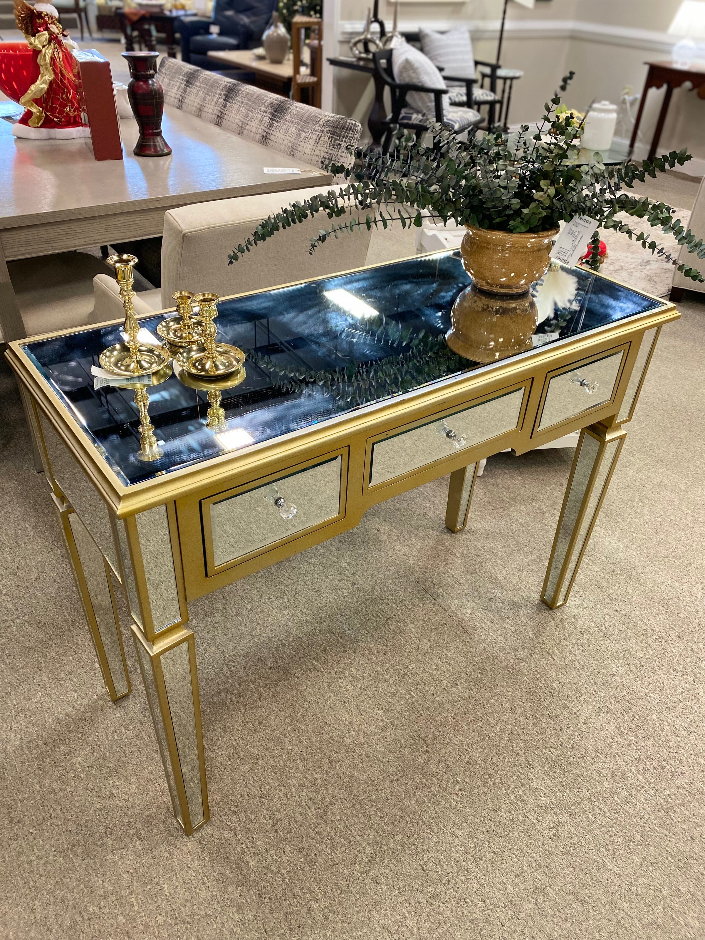 Mirrored & Gold Console with 3 DRW