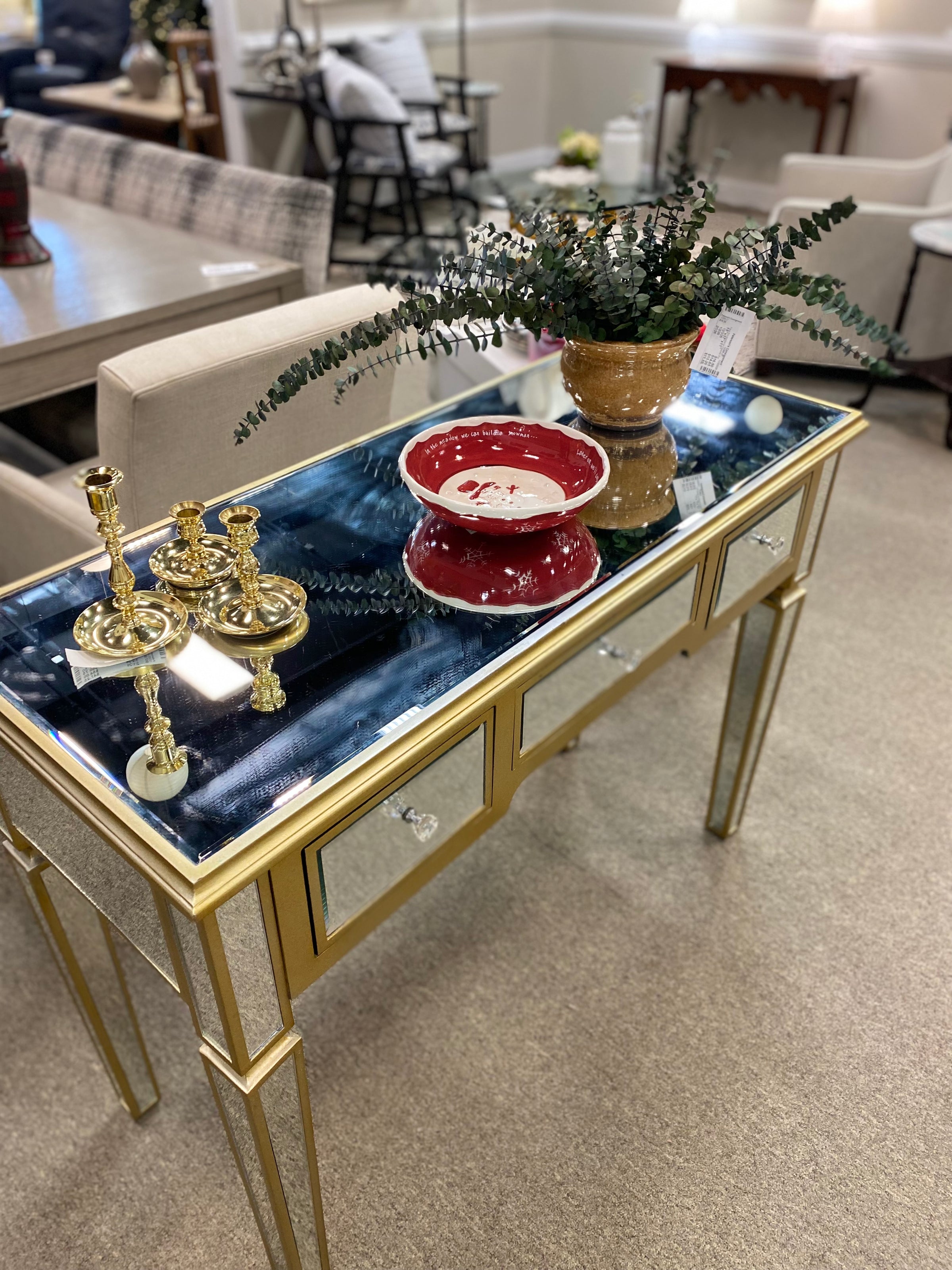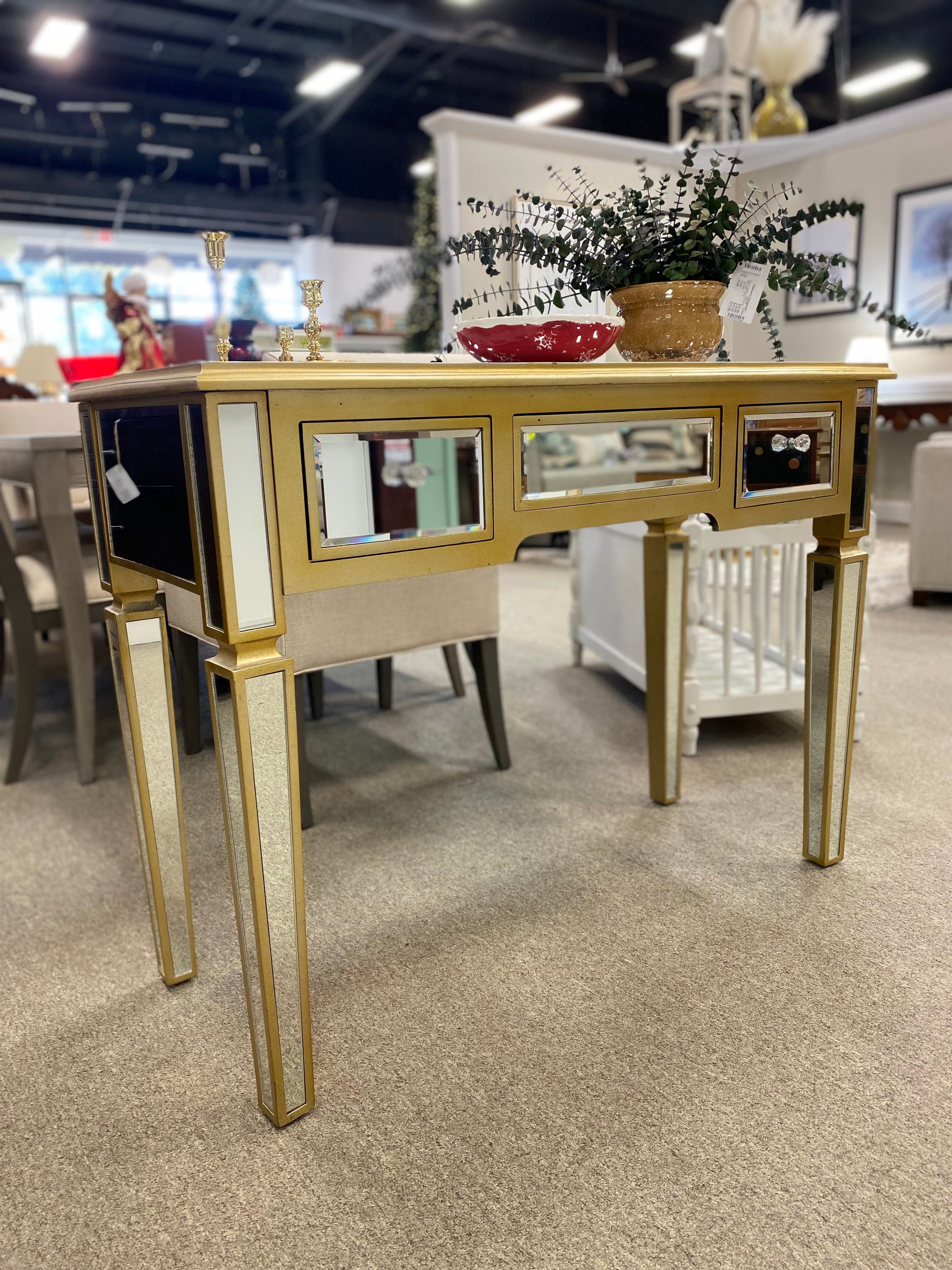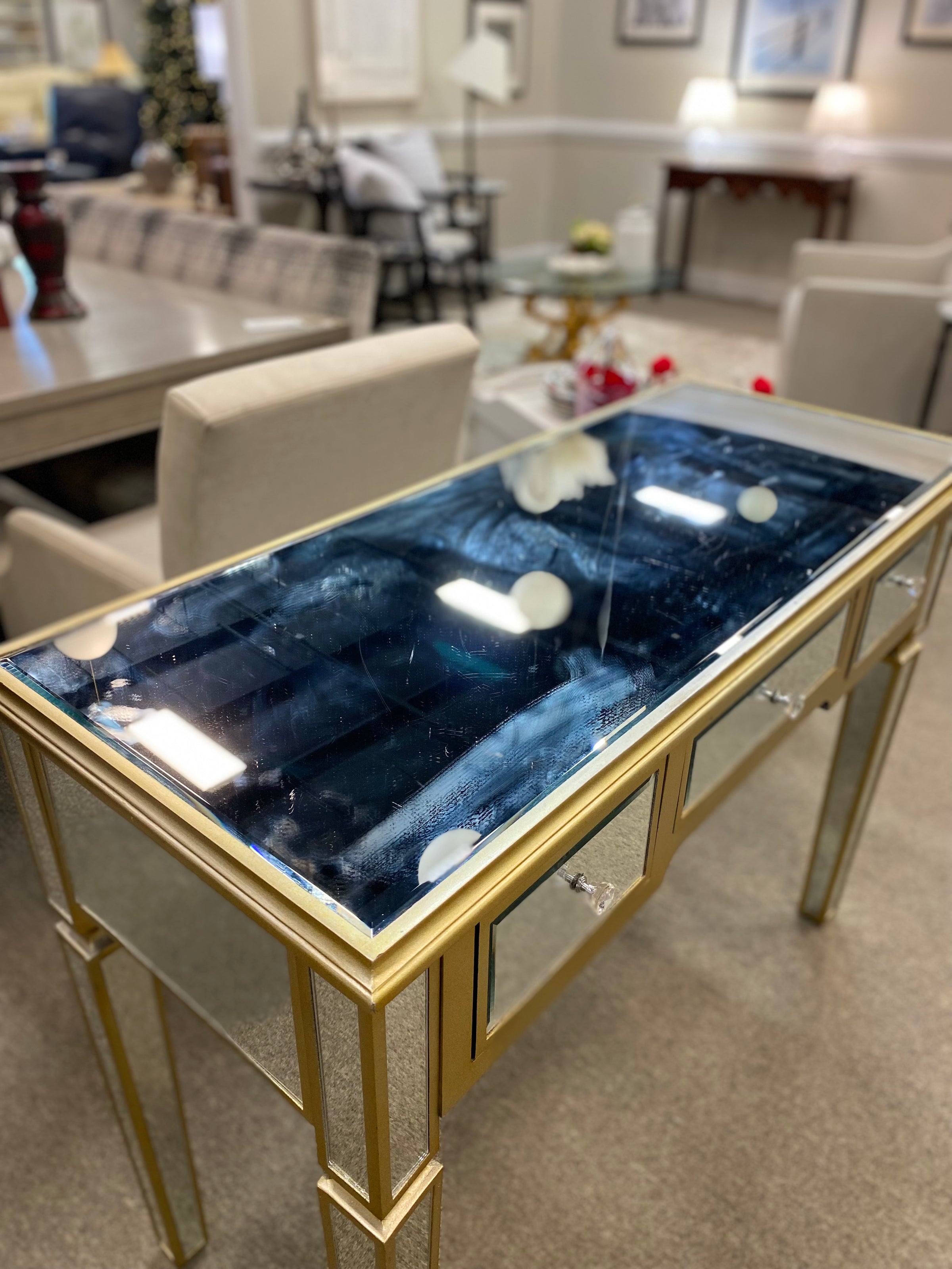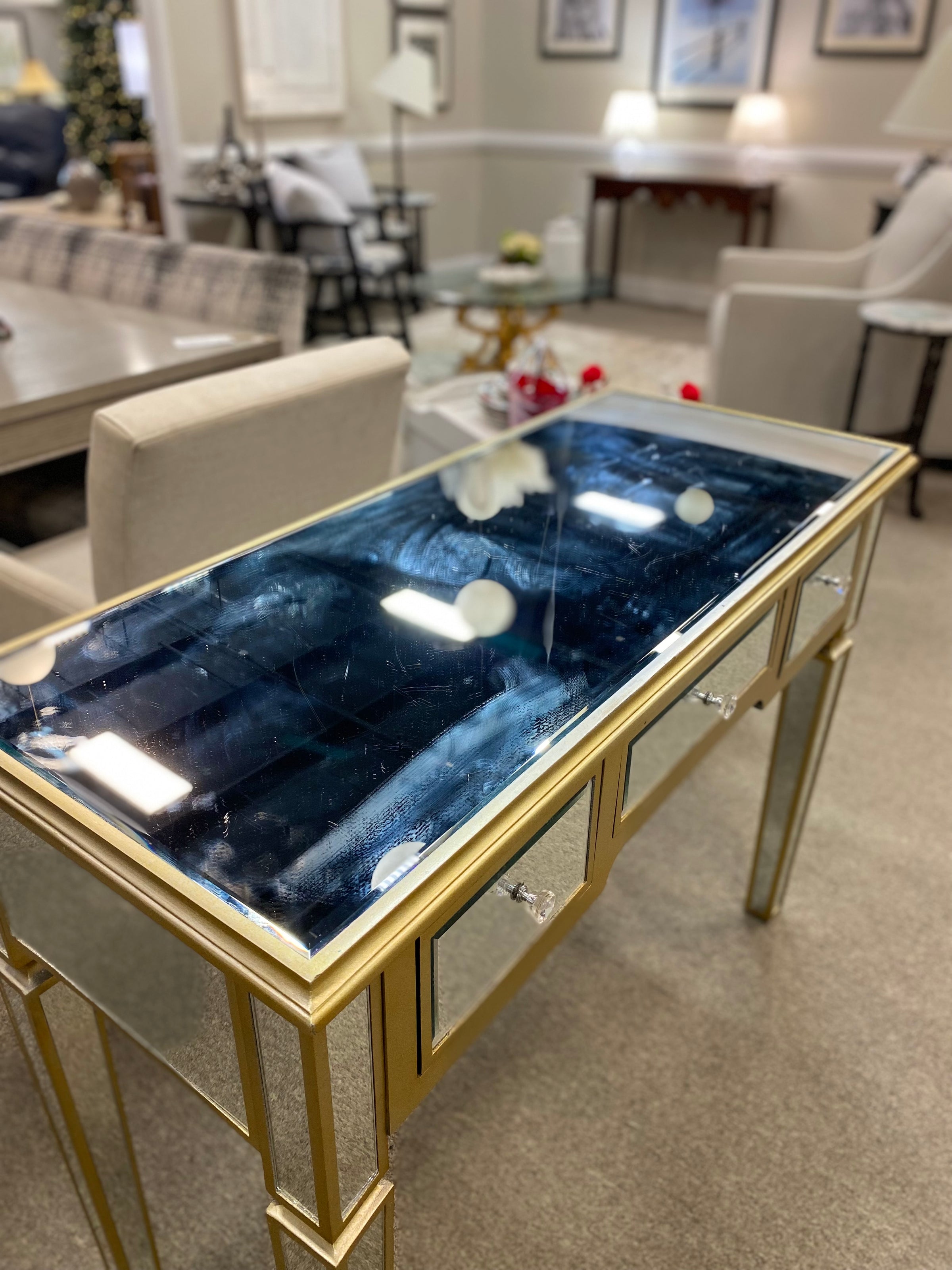 Mirrored & Gold Console with 3 DRW