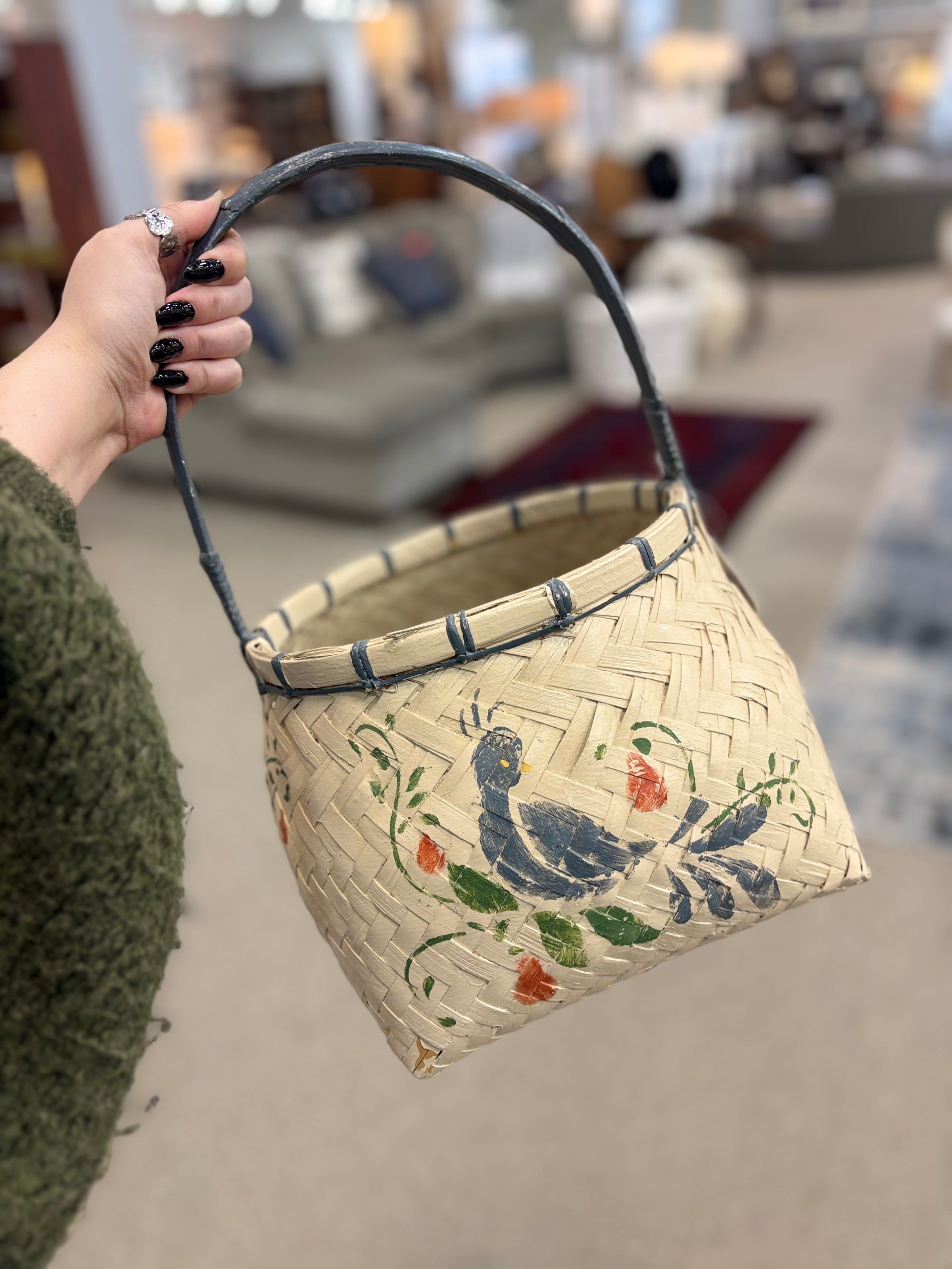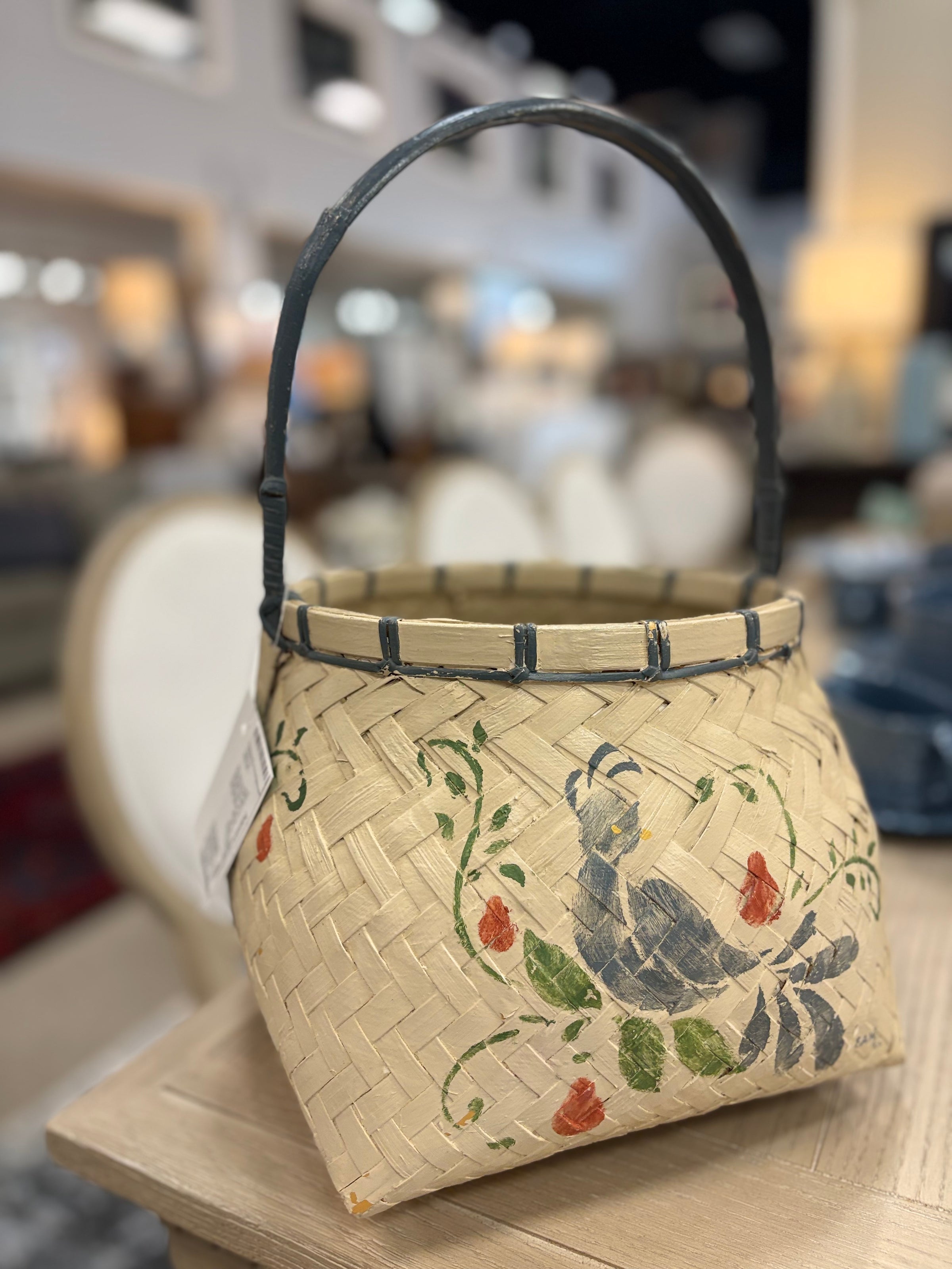 Handpainted Bird Basket