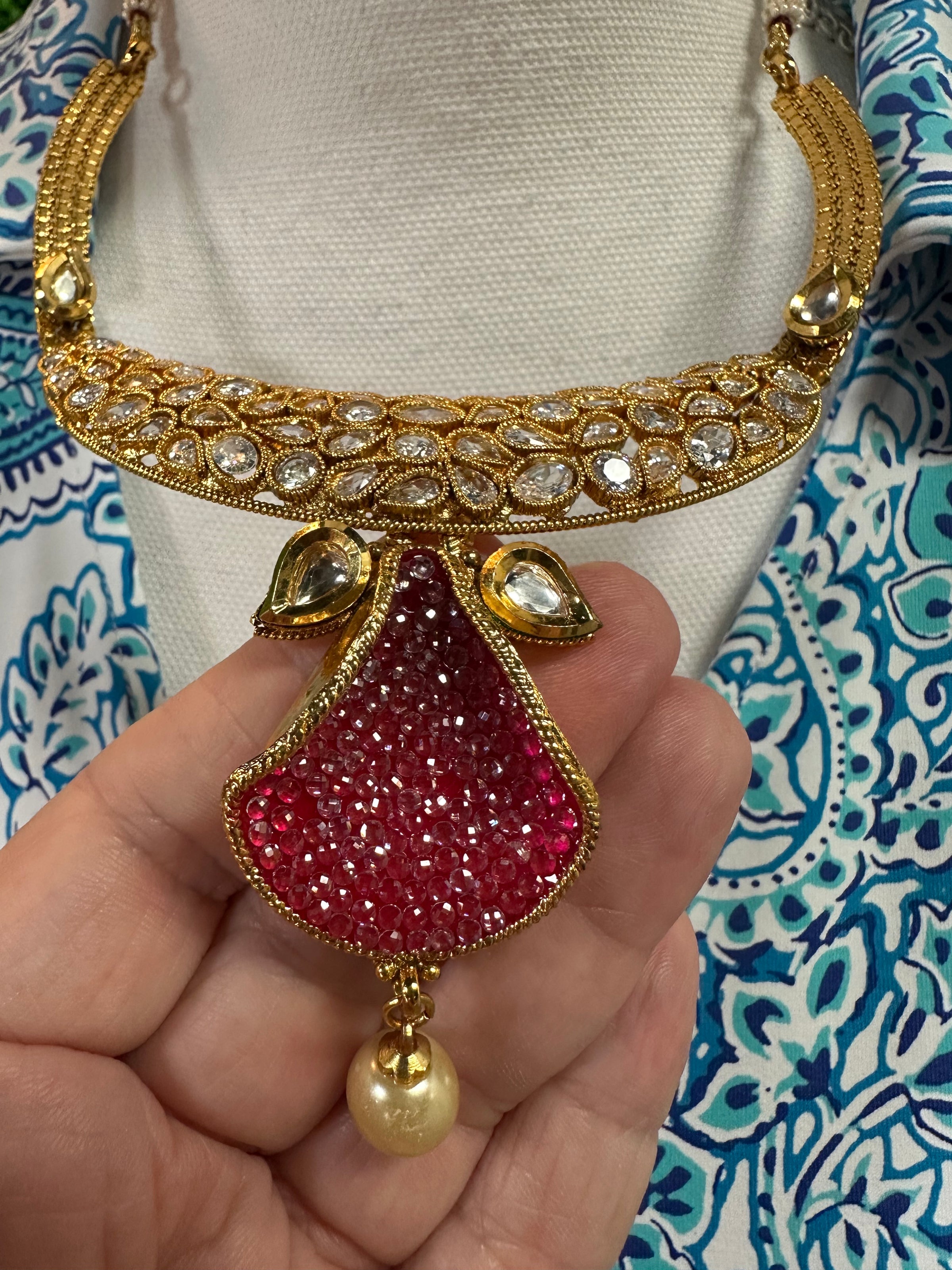 Necklace/ collar/petal/prl/rhnstns
