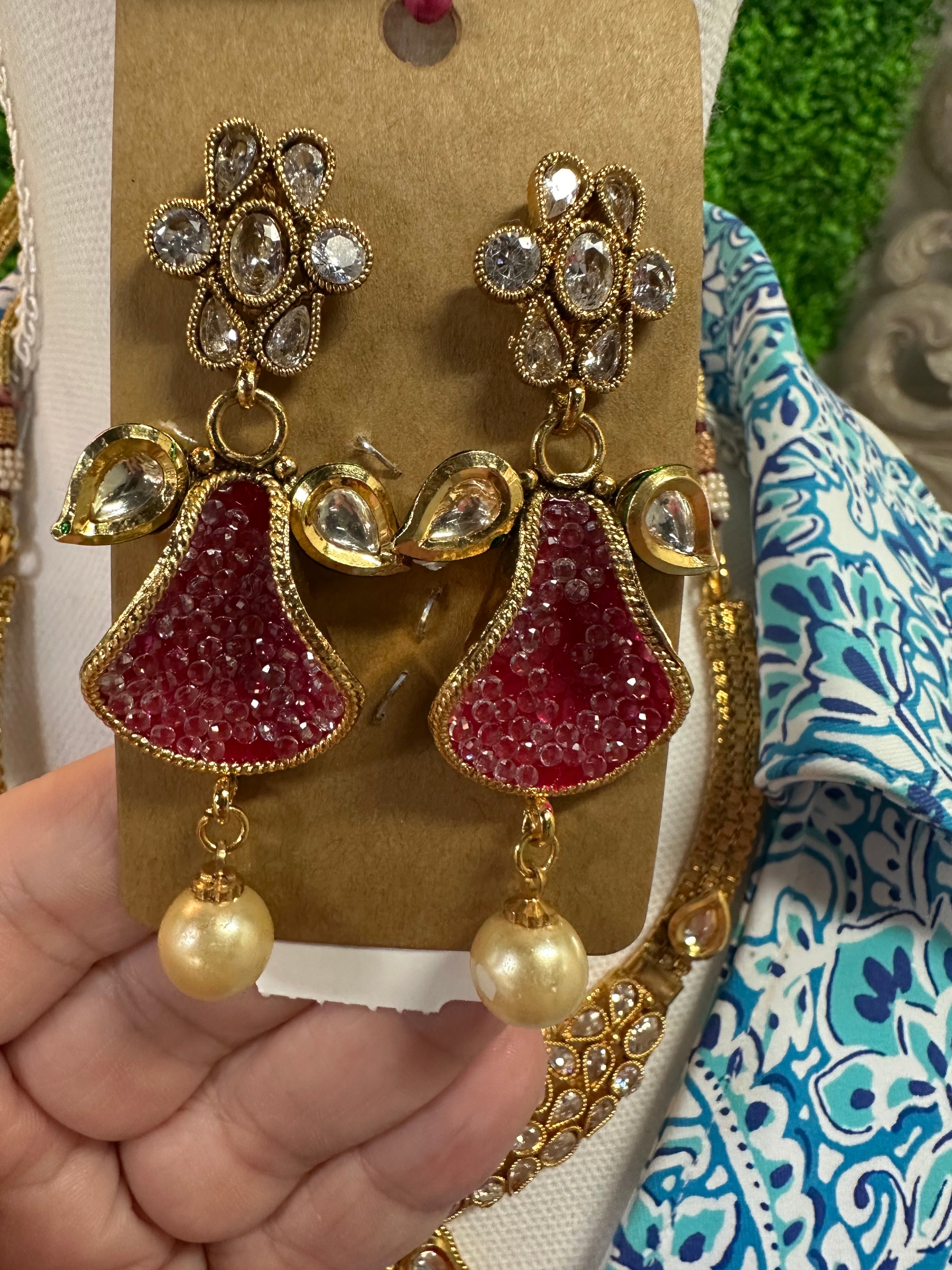 Earrings/ collar/petal/prl/rhnstns