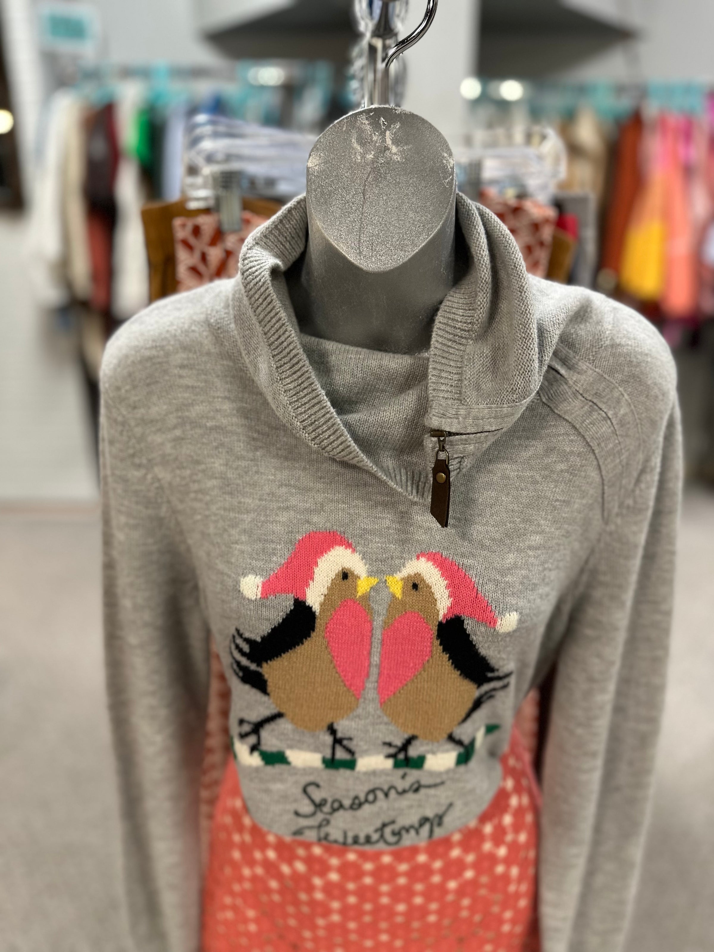 Talbots sweater/LS/birds/seasons greetings/turt-neck