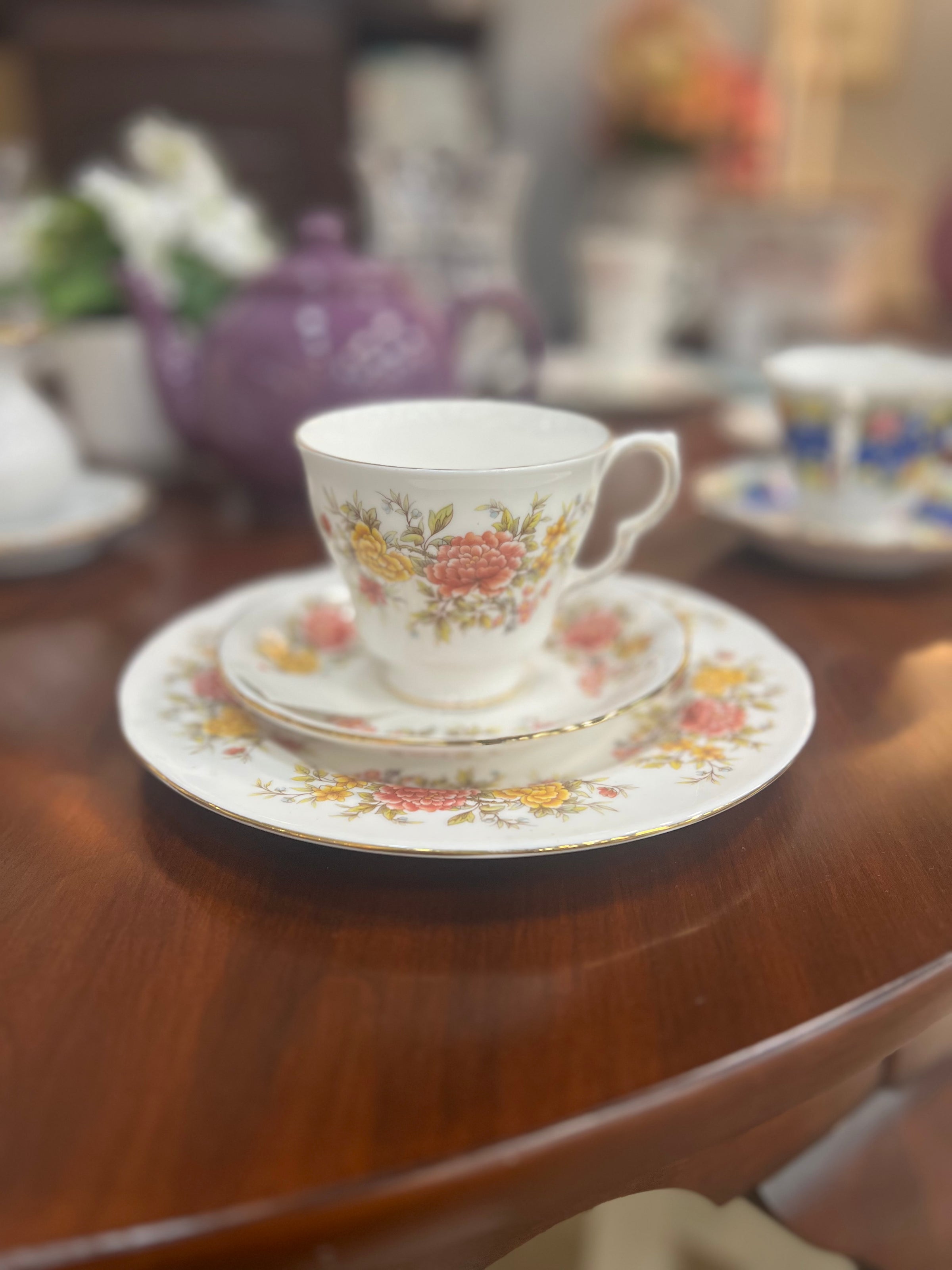 Flower Tea Cup W/Saucer and Plate