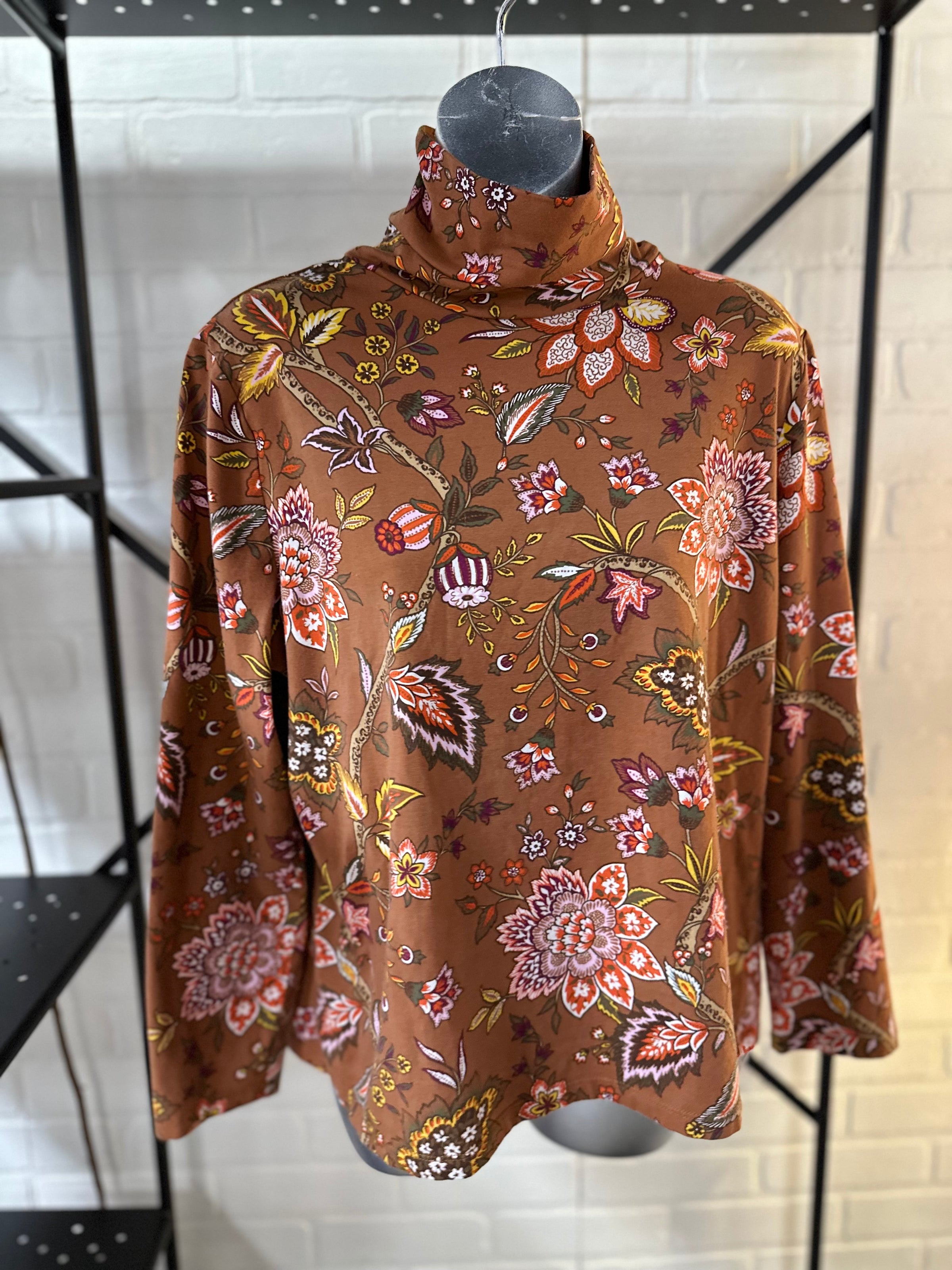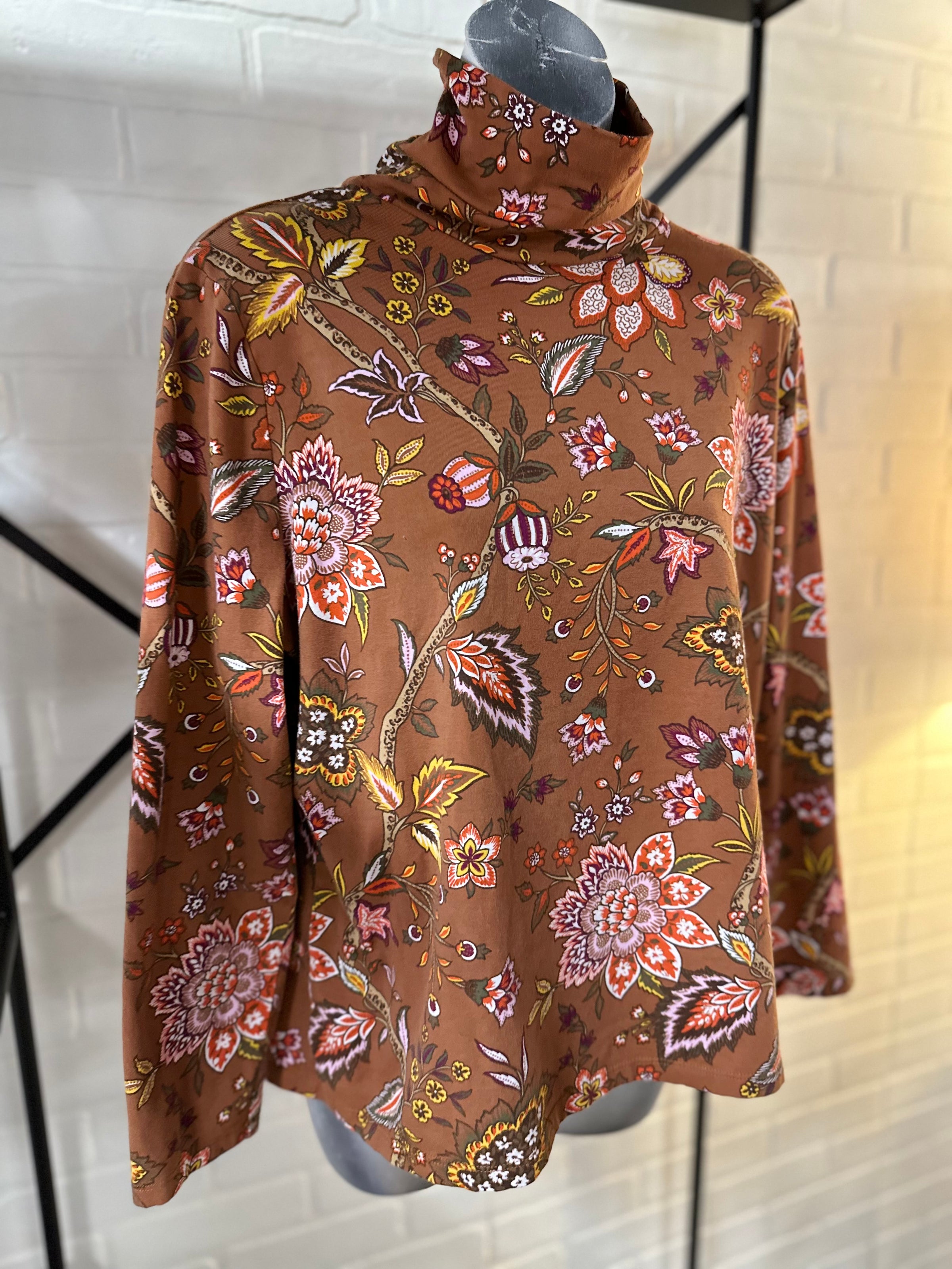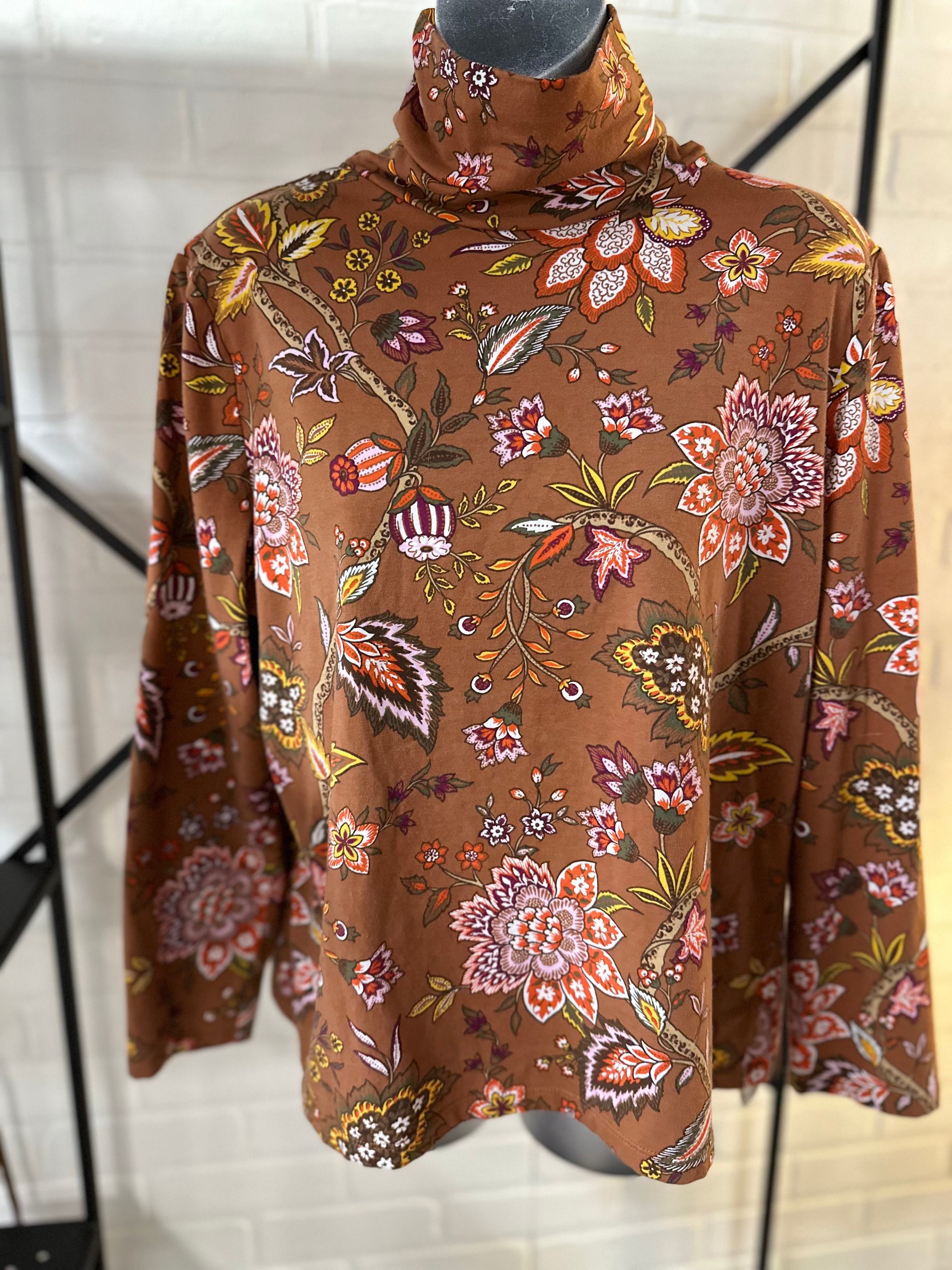 Talbots top/LS/floral/leaf-prnt/turt-nck