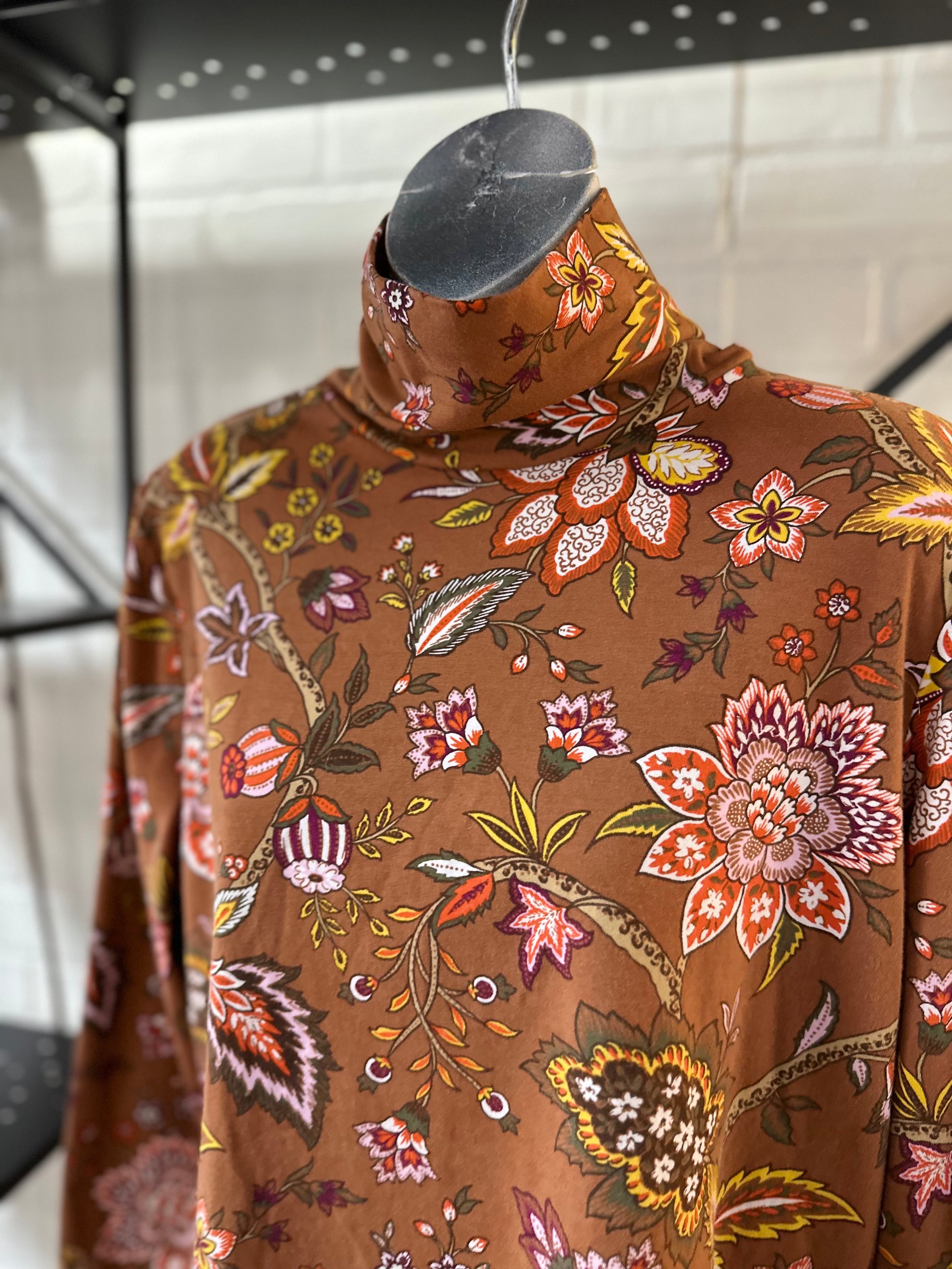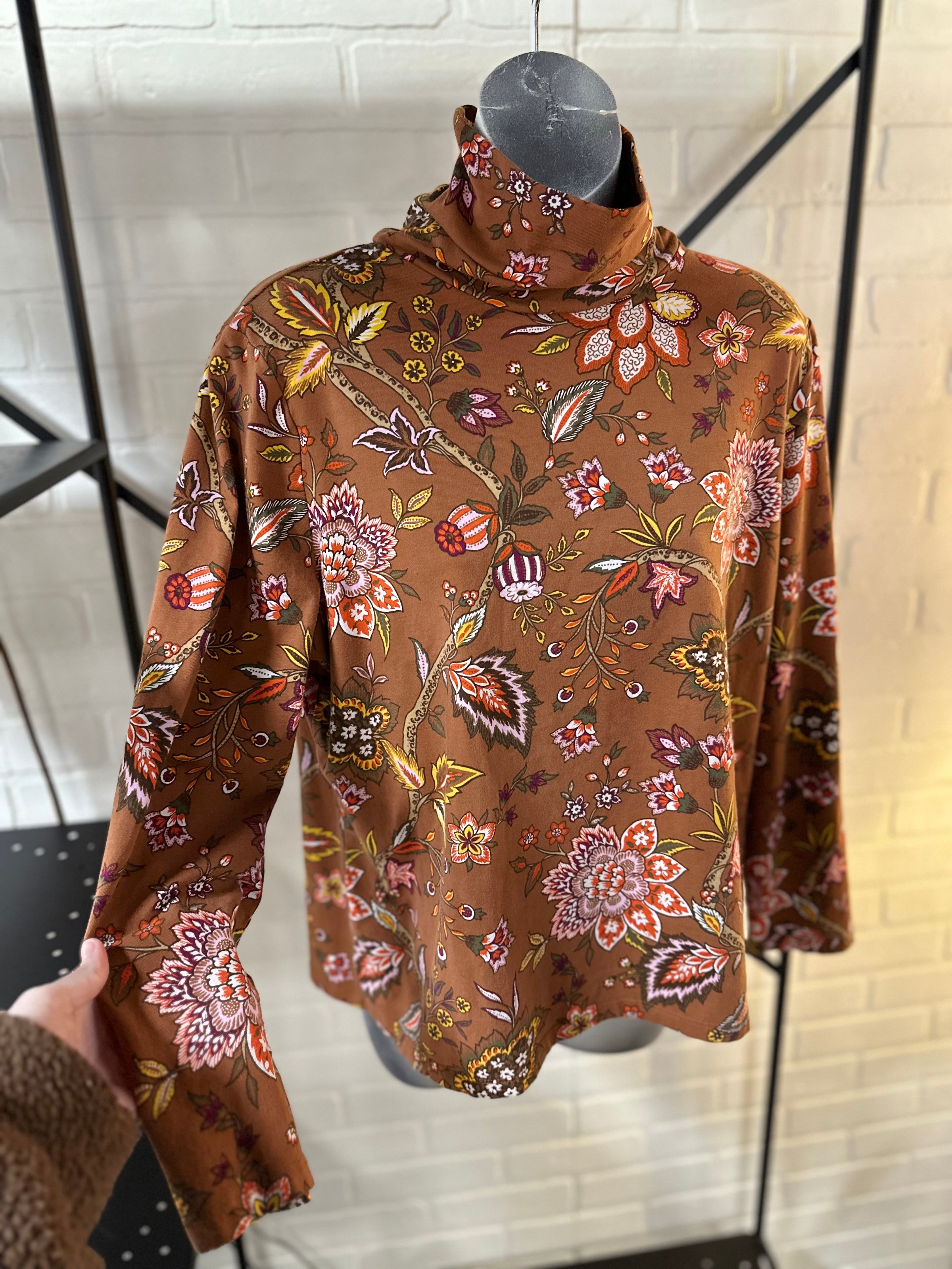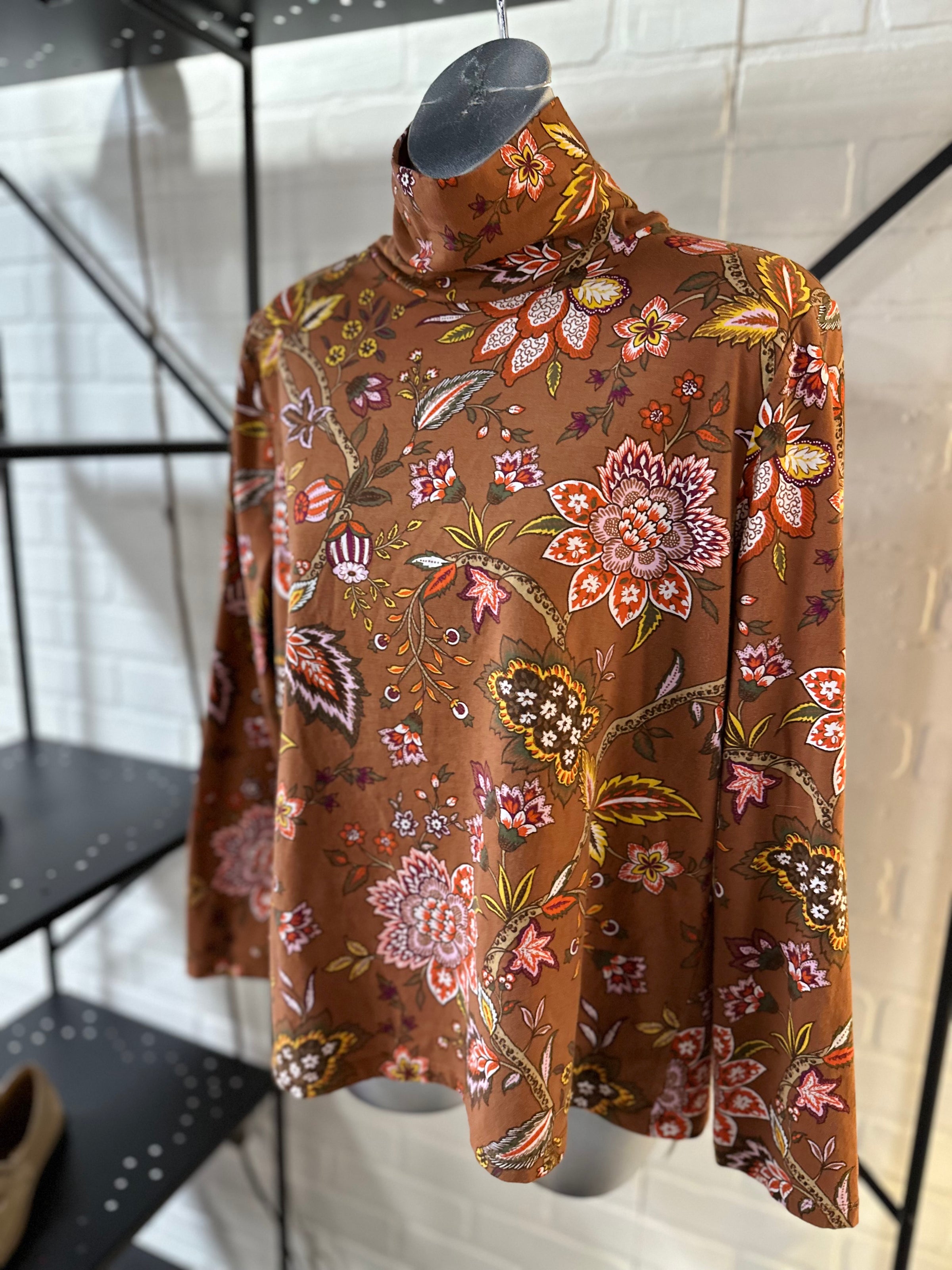 Talbots top/LS/floral/leaf-prnt/turt-nck