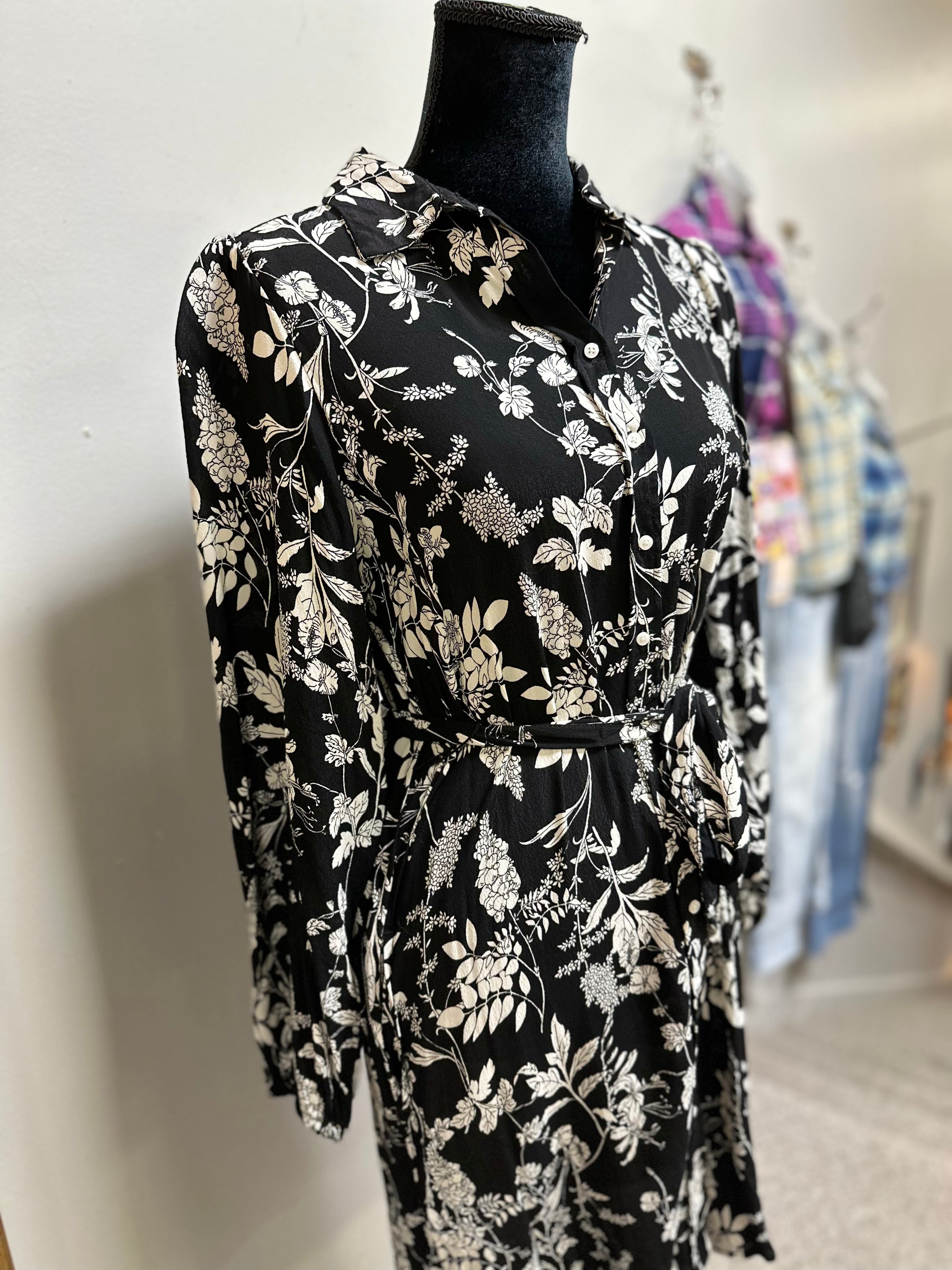 Well Worn dress/LS/floral/belt