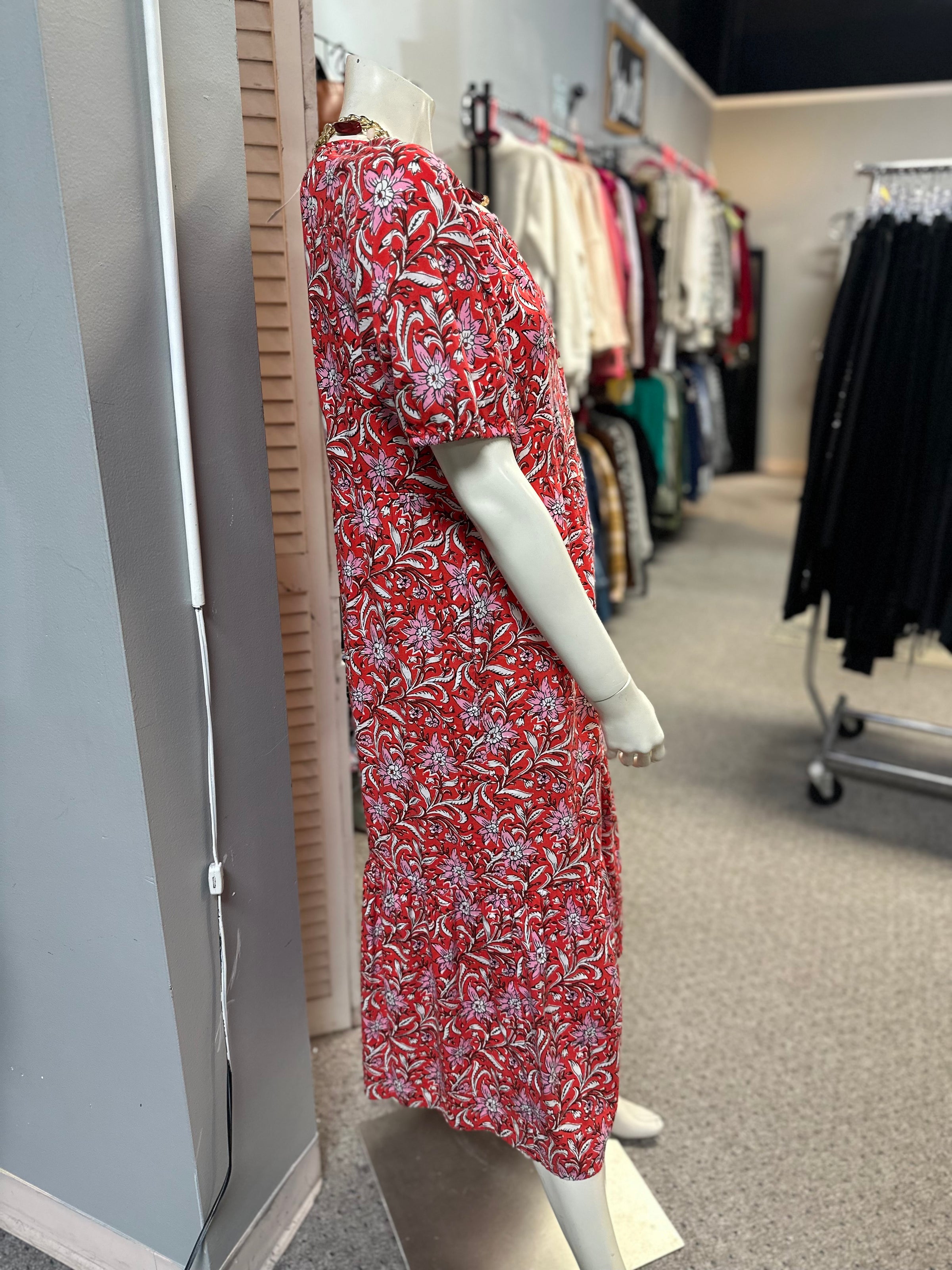 Loft dress/floral/maxi/bttns/vneck