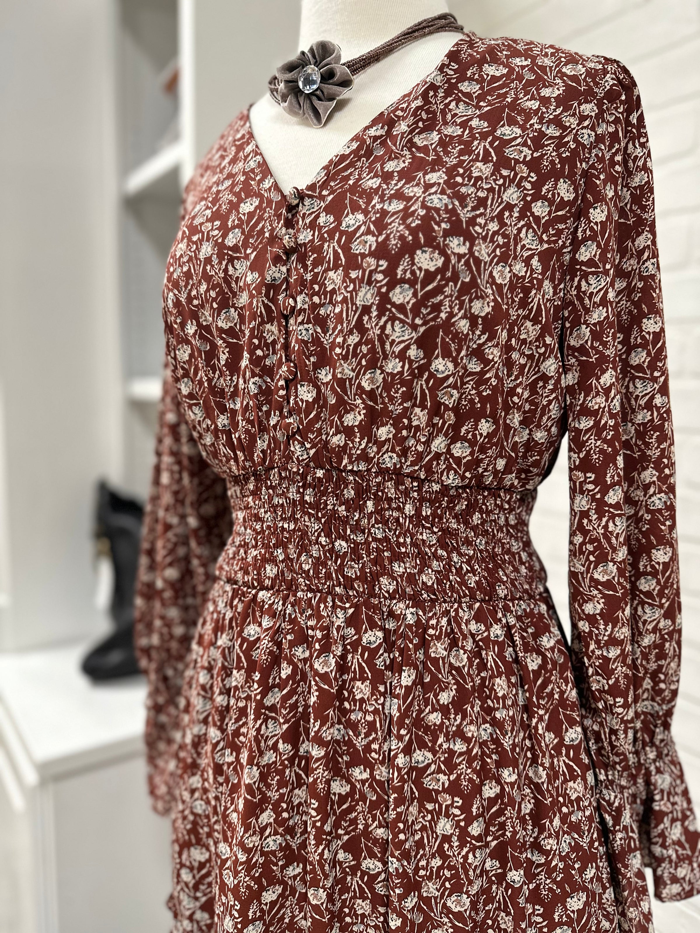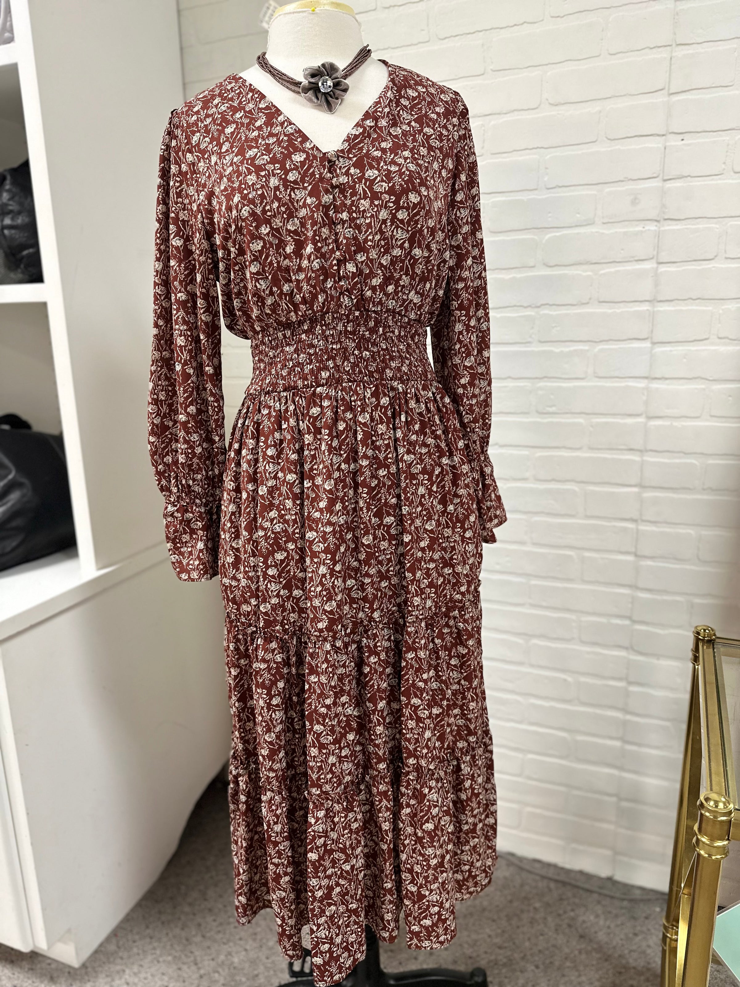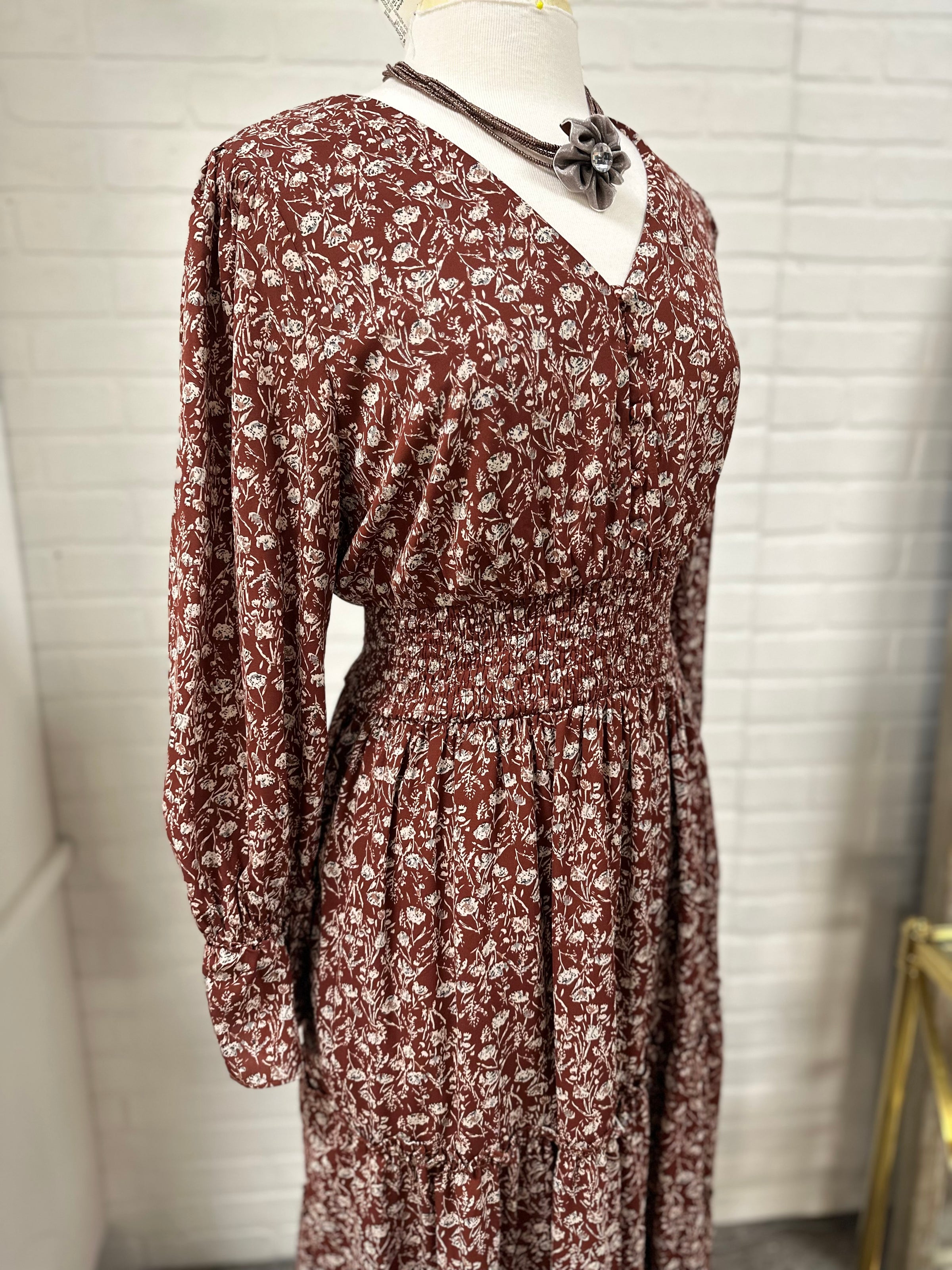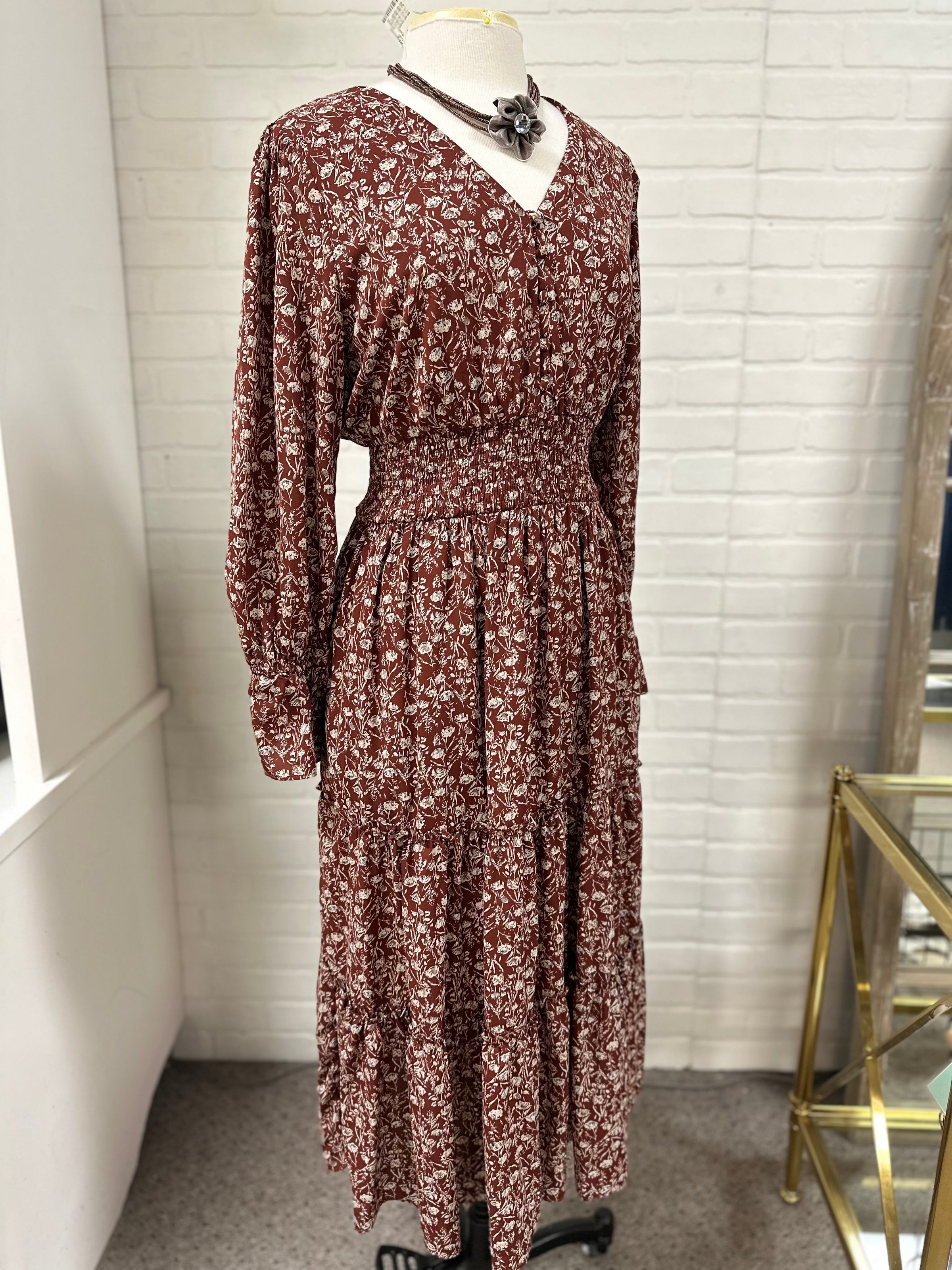 Loveriche dress/floral/maxi/ls/bttns