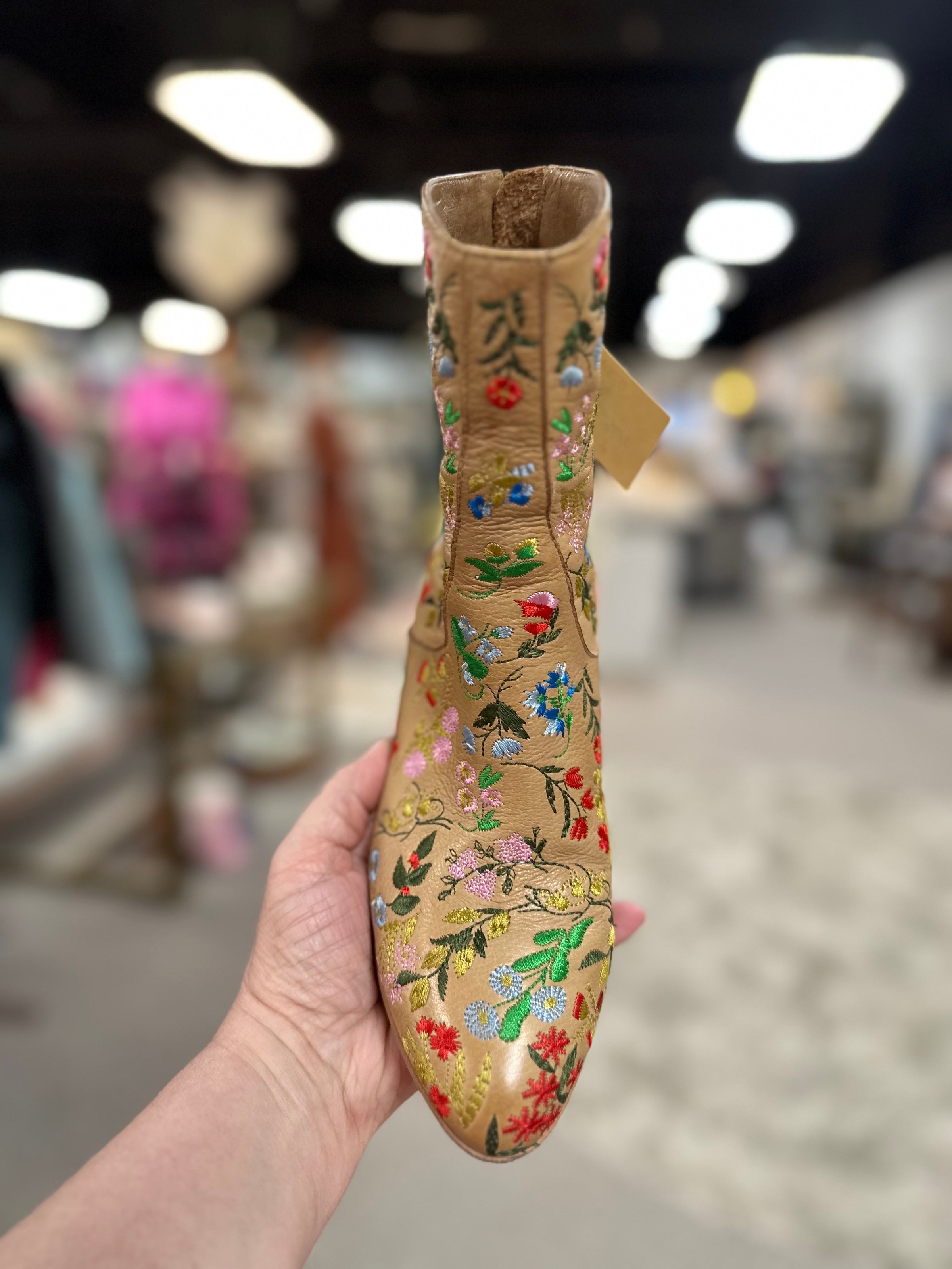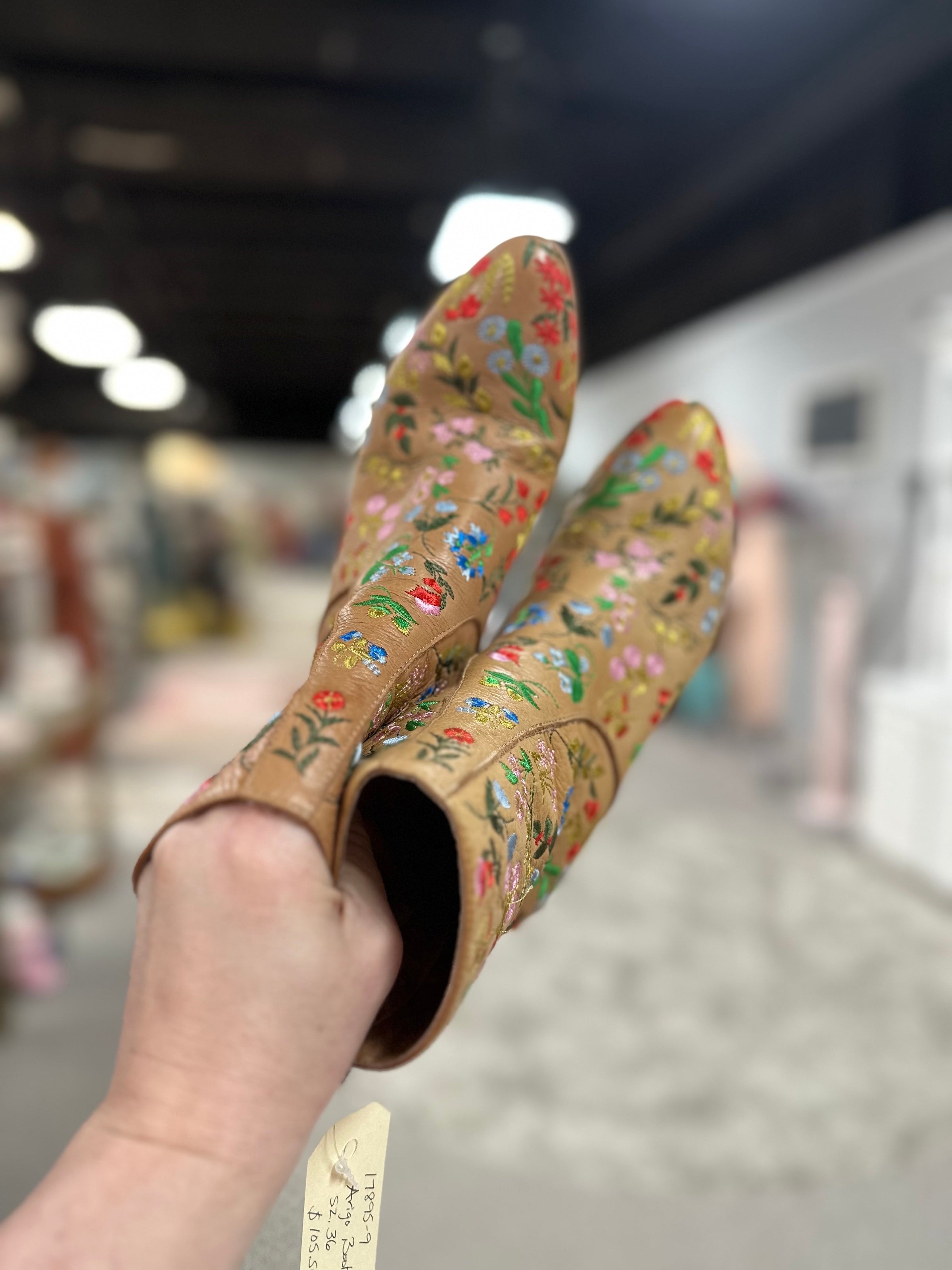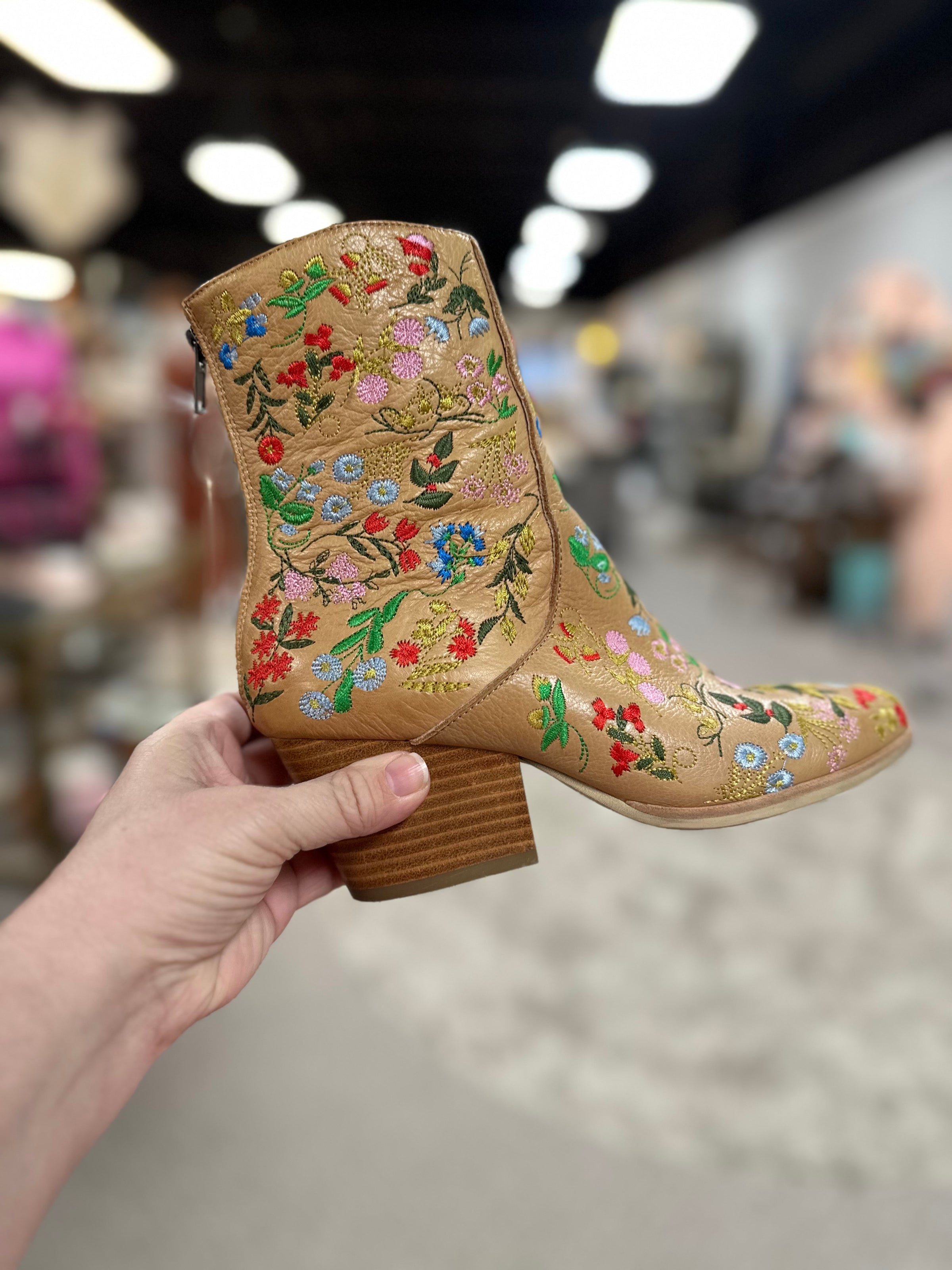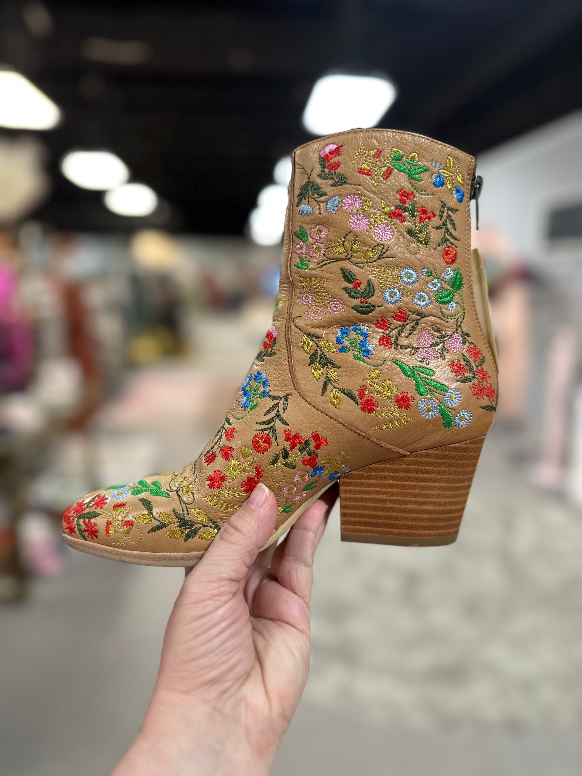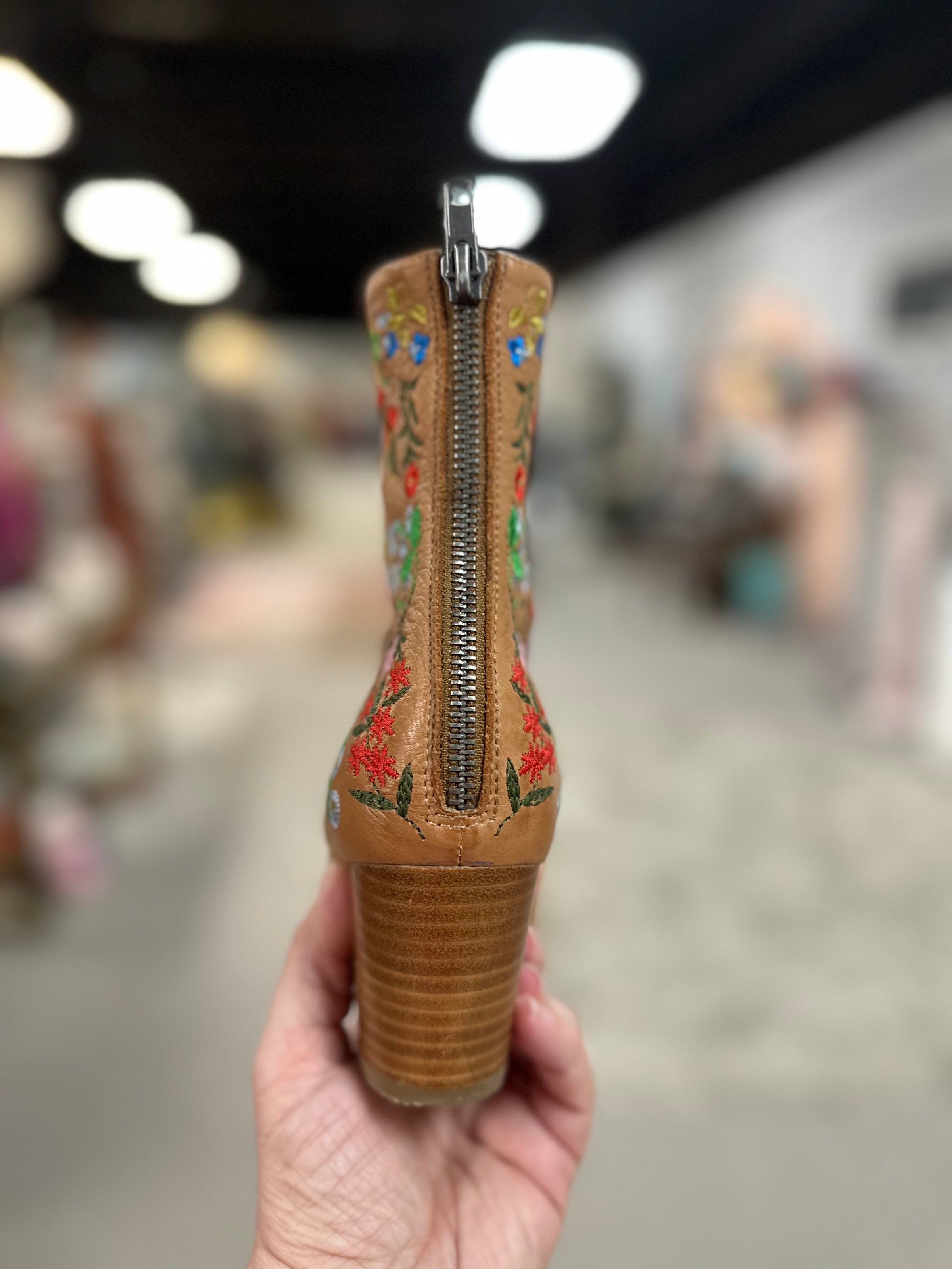 Arigo Boots/heel/flwrs/back zip