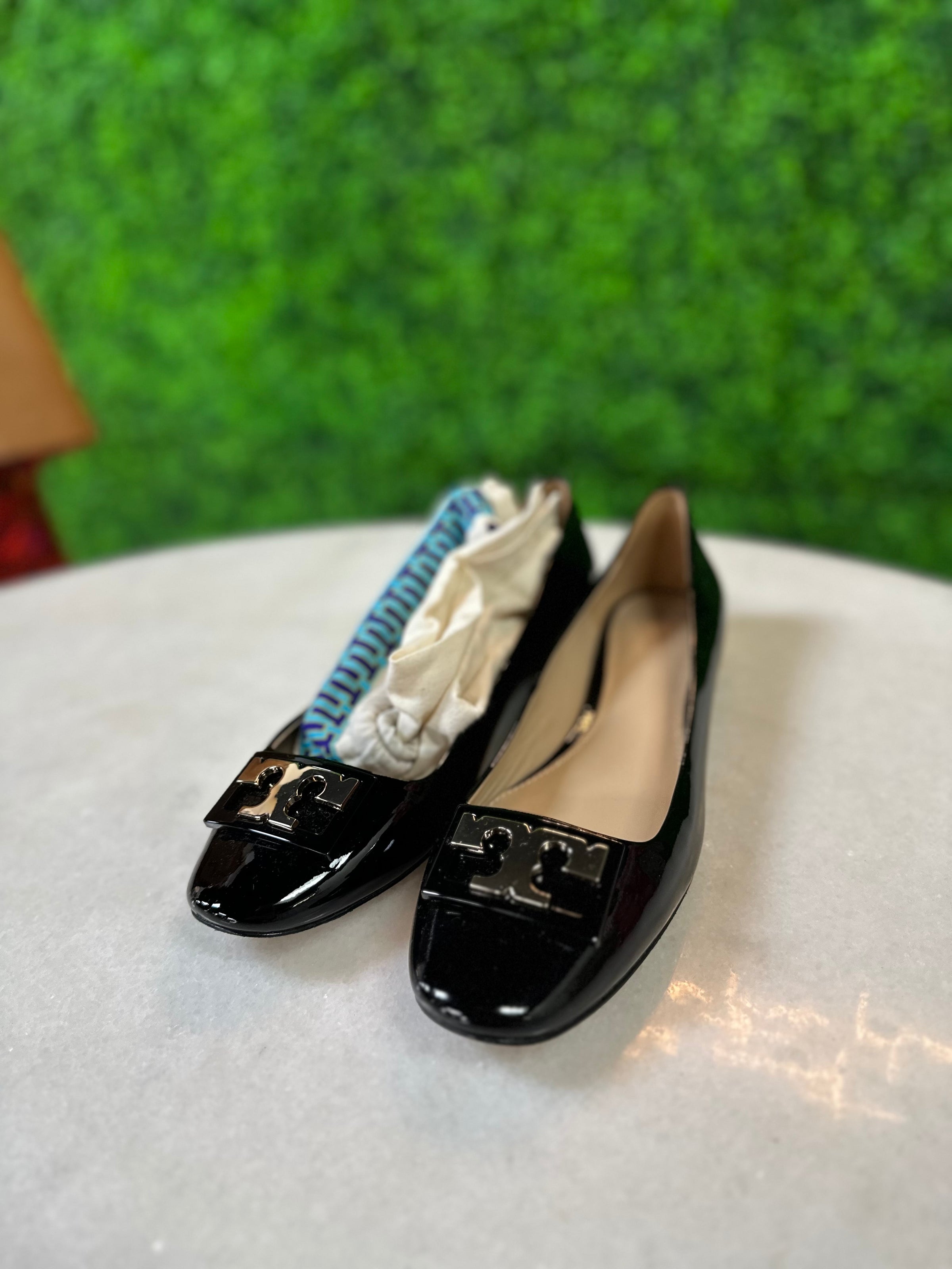 Tory Burch Flats/patent leather/gold logo