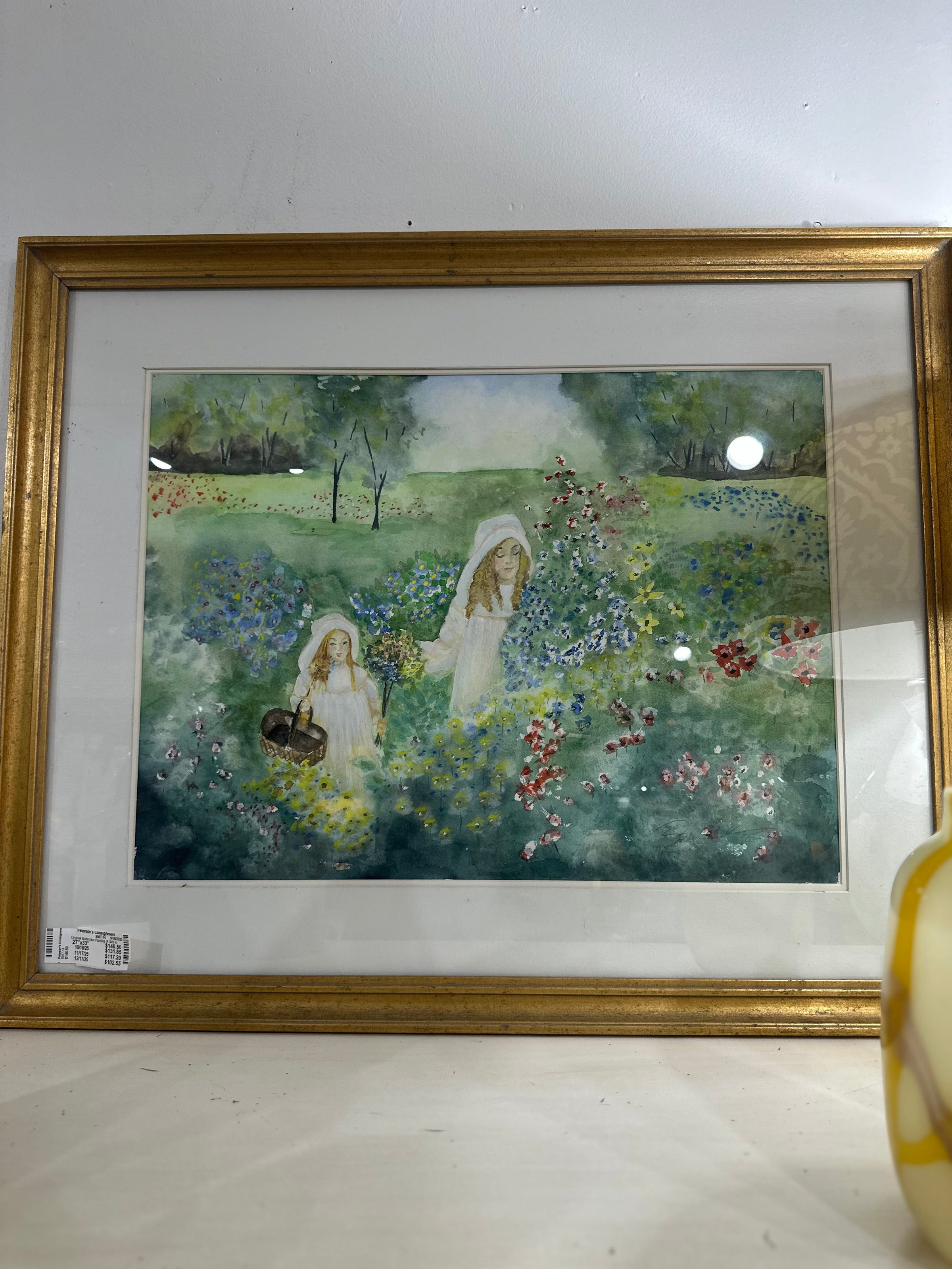 Original Watercolor Painting of Girls in Flower Field