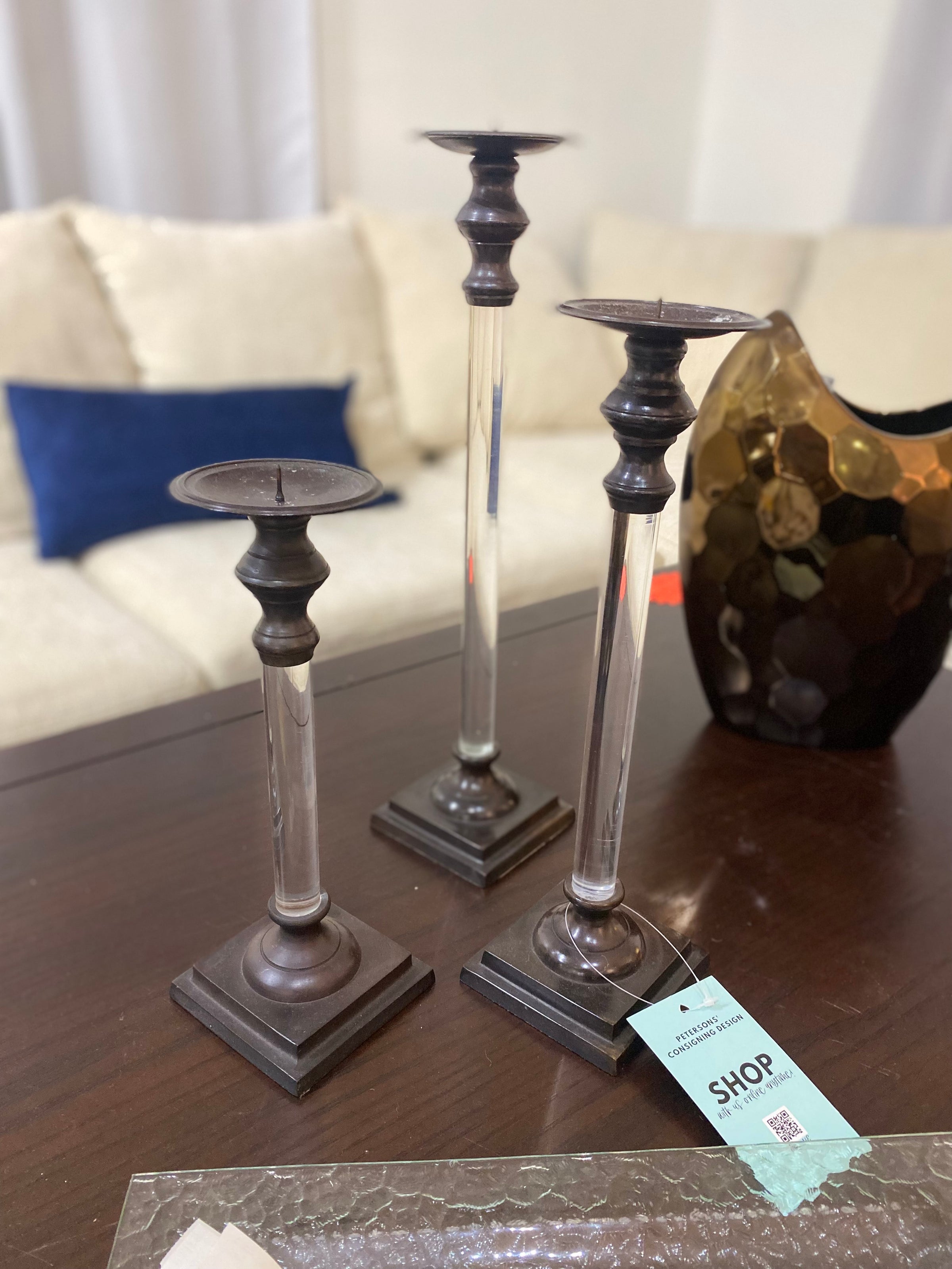 Dark Metal and Acrylic Candlesticks