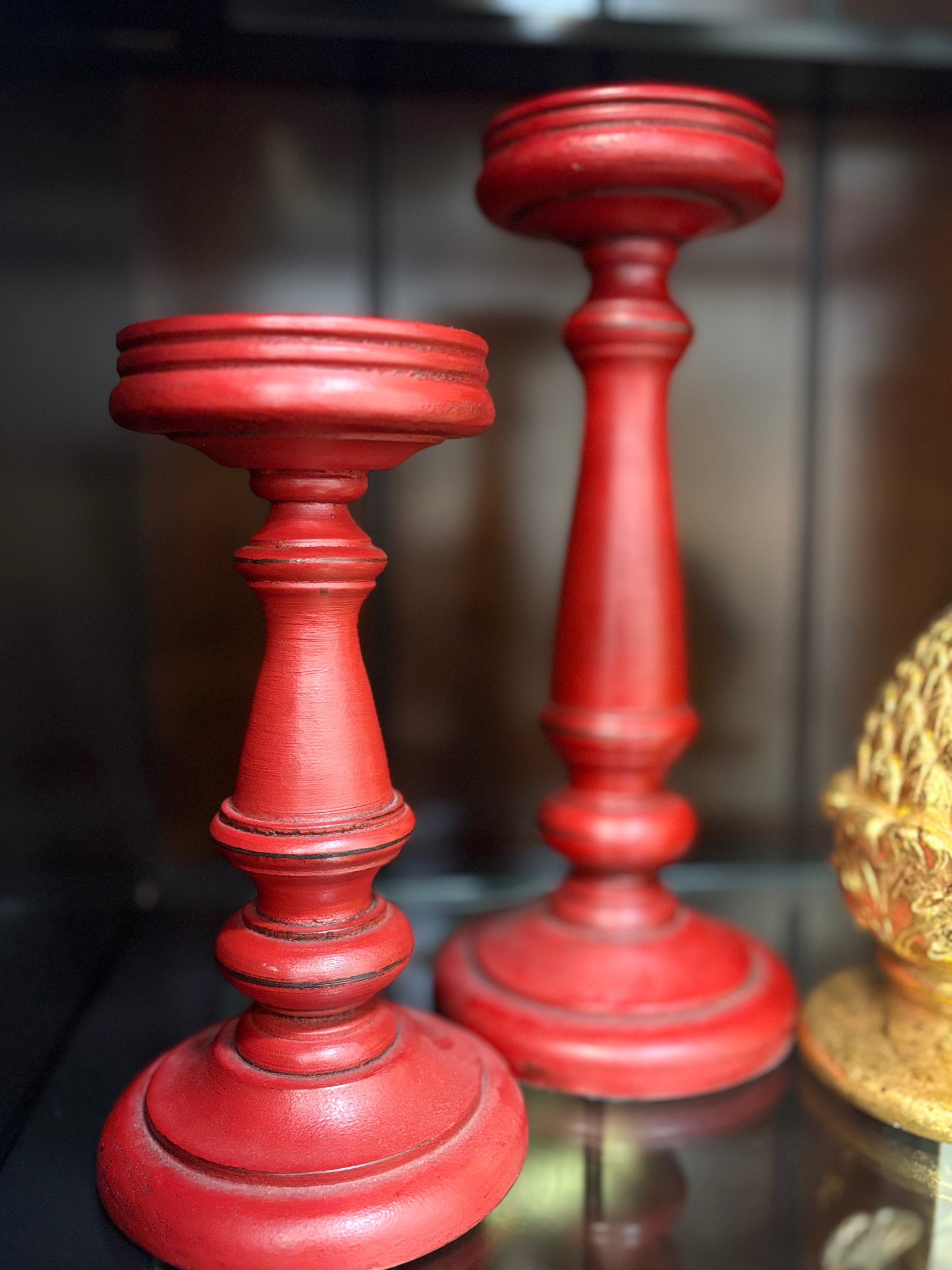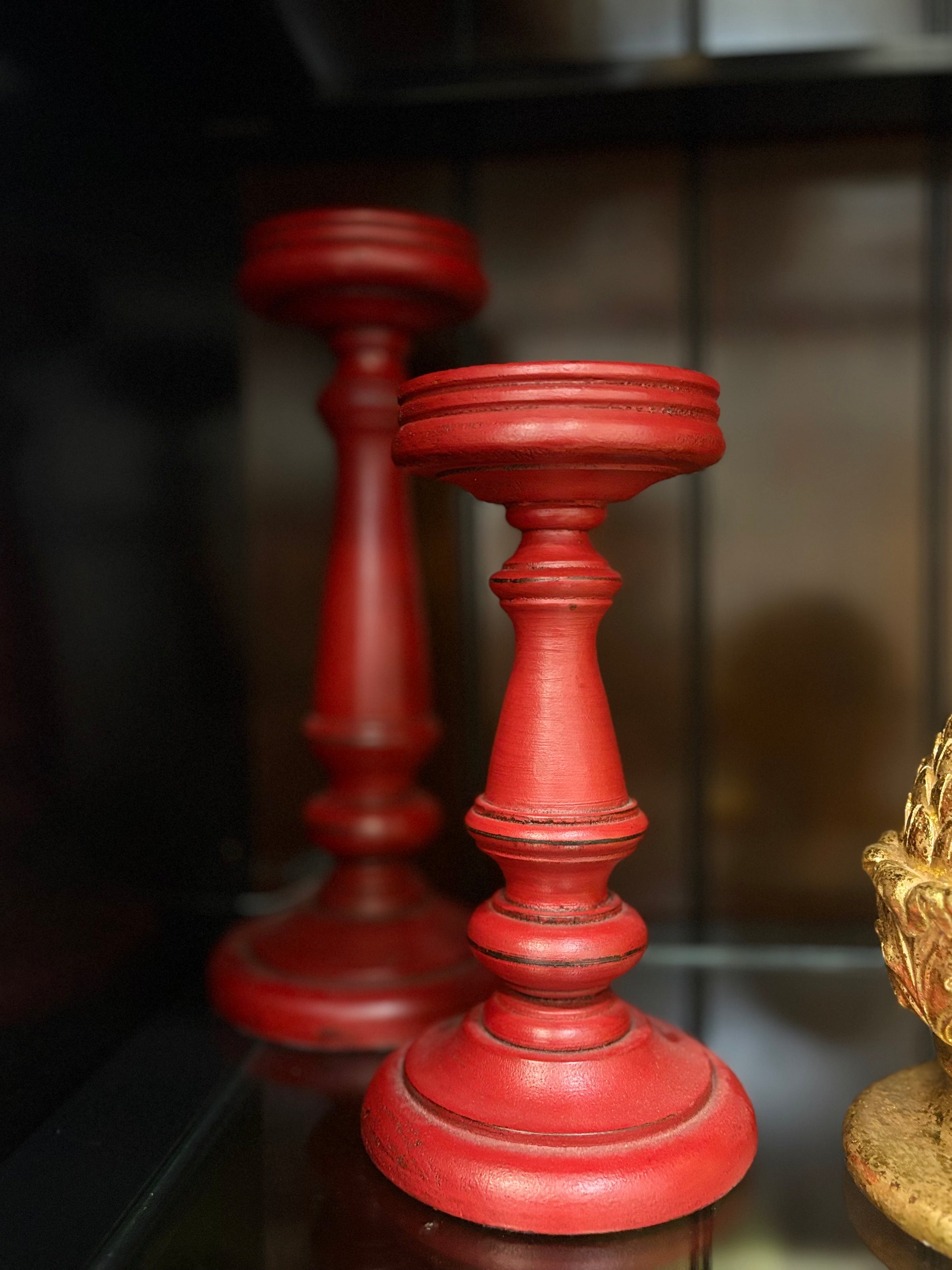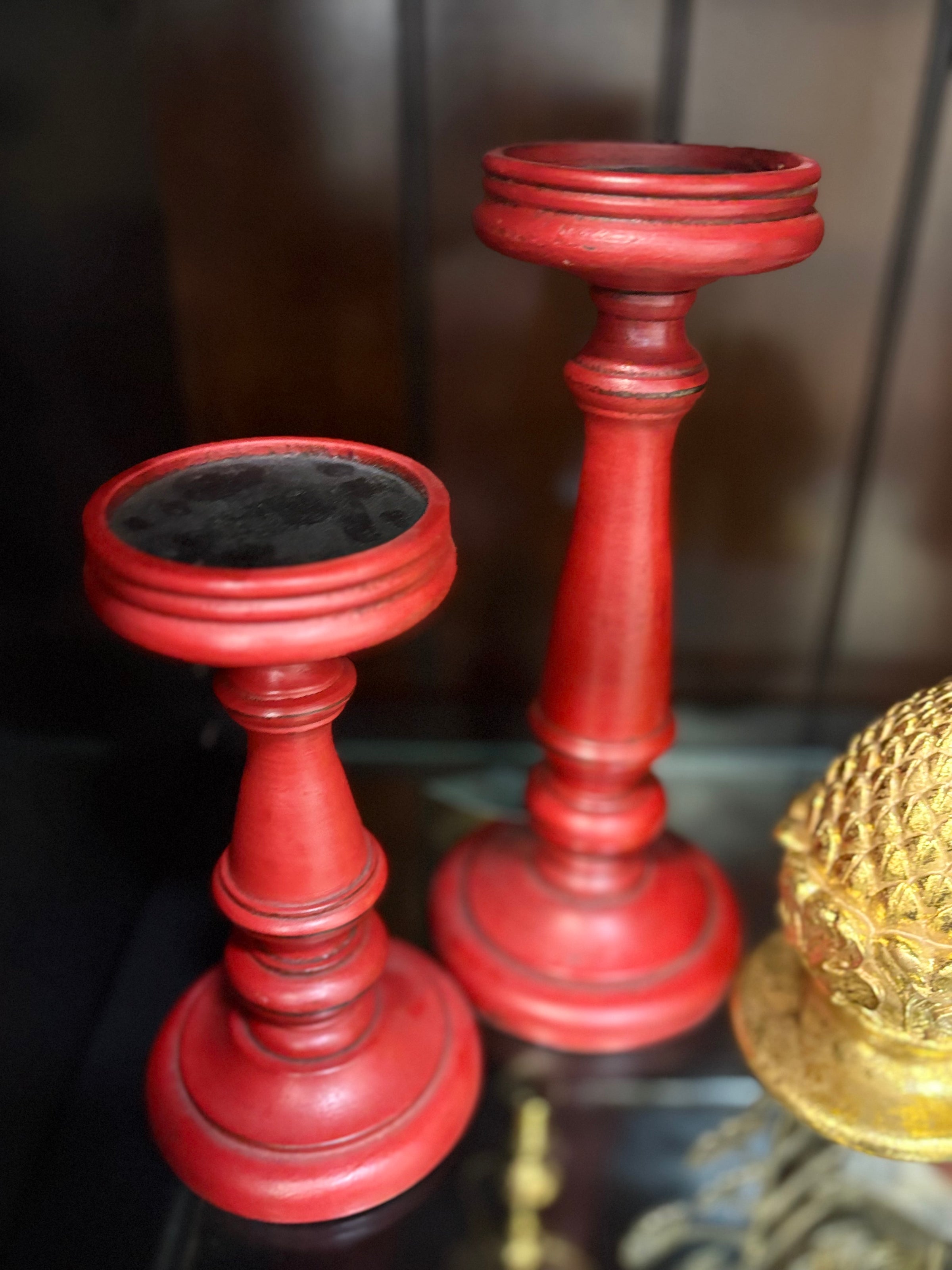 Red Painted Pillar Candleholders