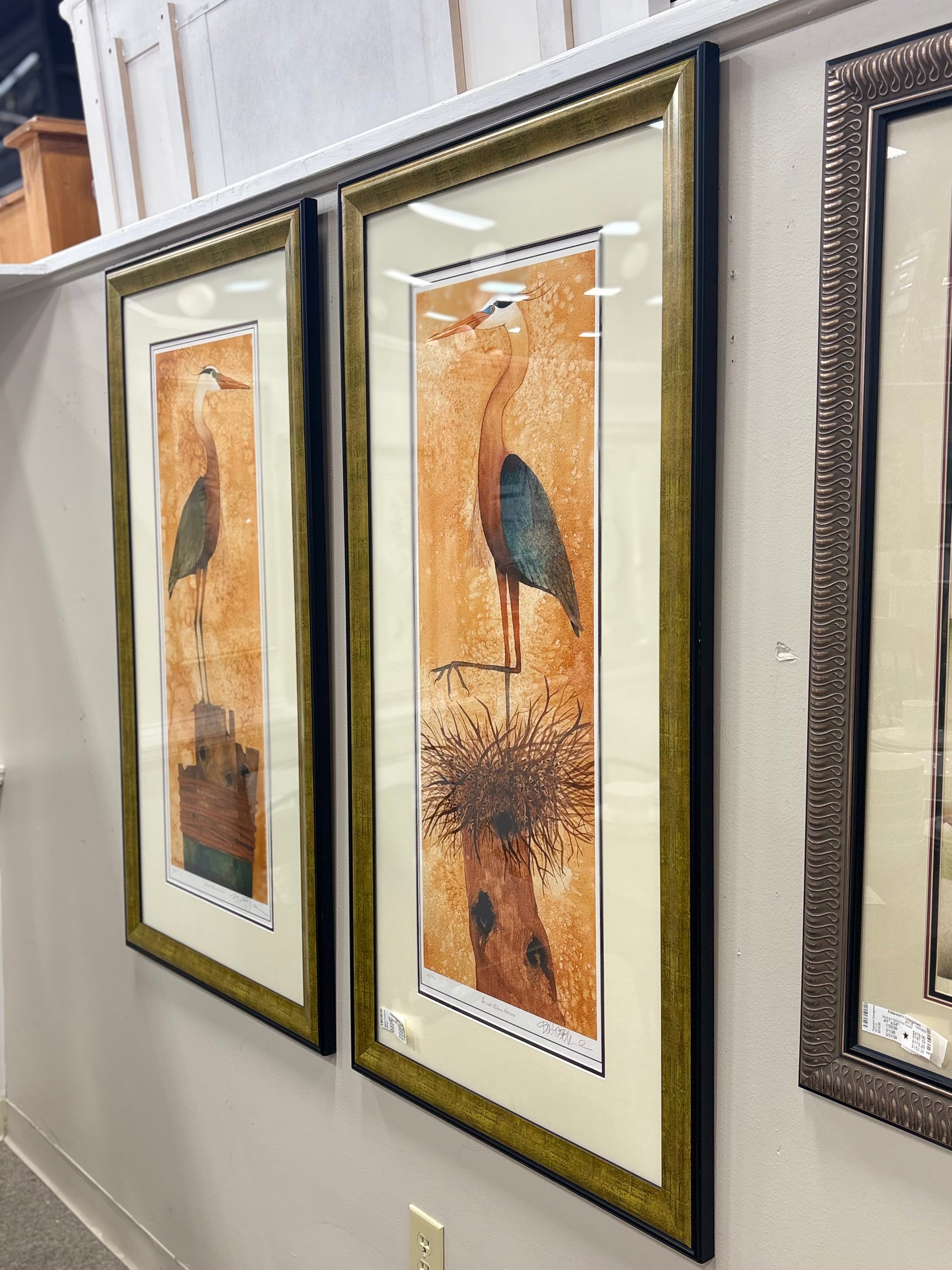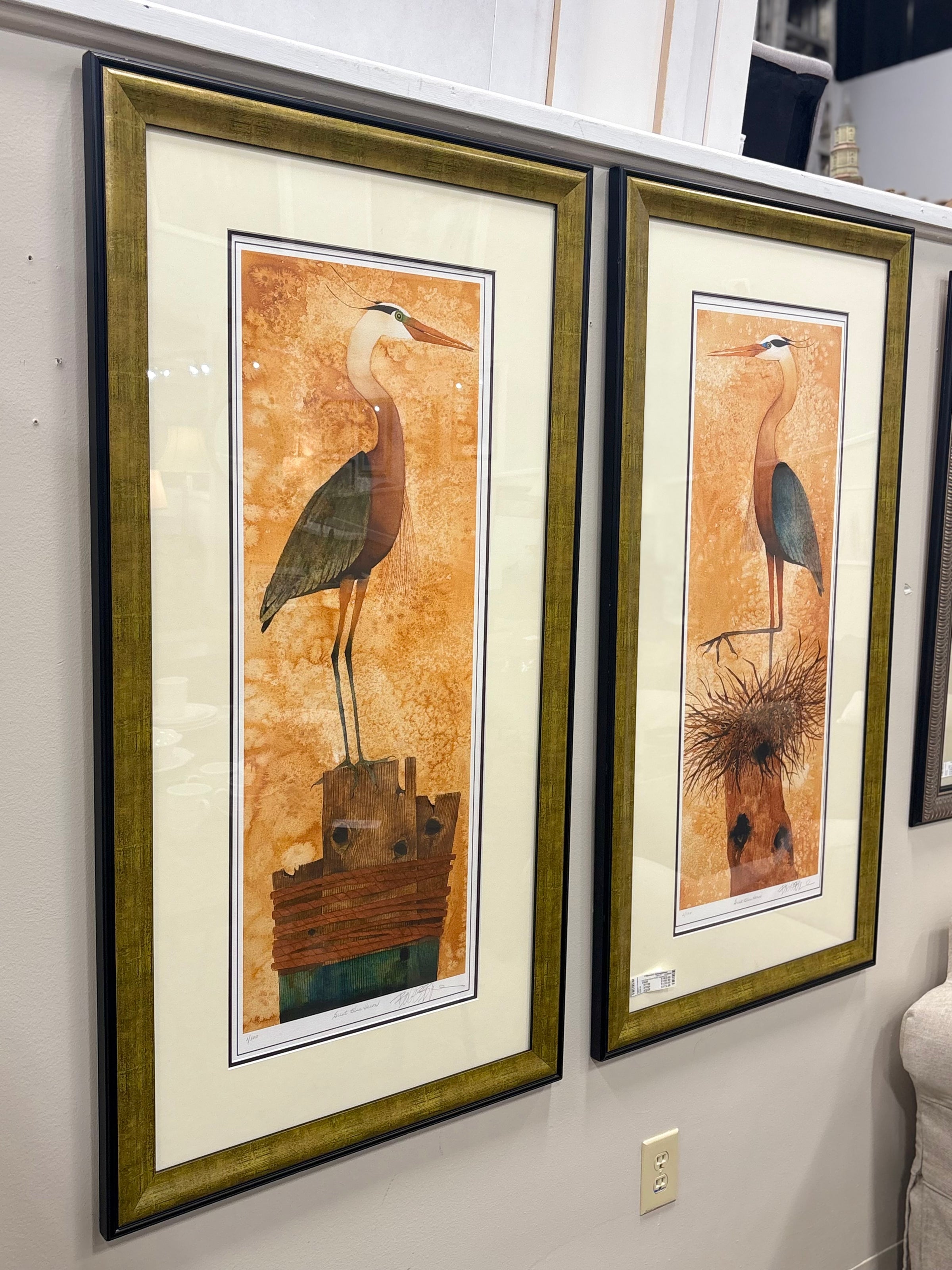 Pair Great Heron Prints / Signed #'ed