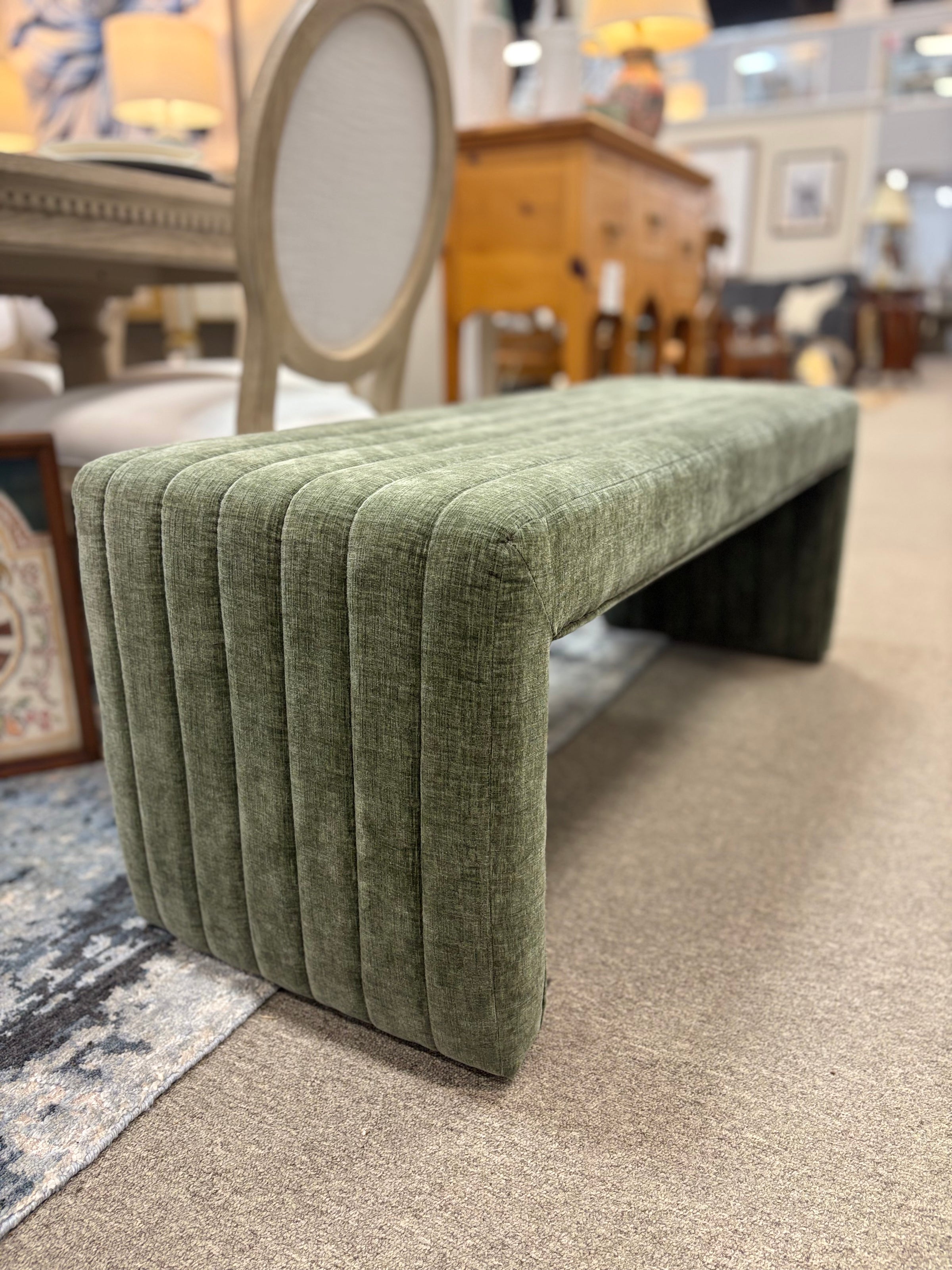 Green Chenille Bench