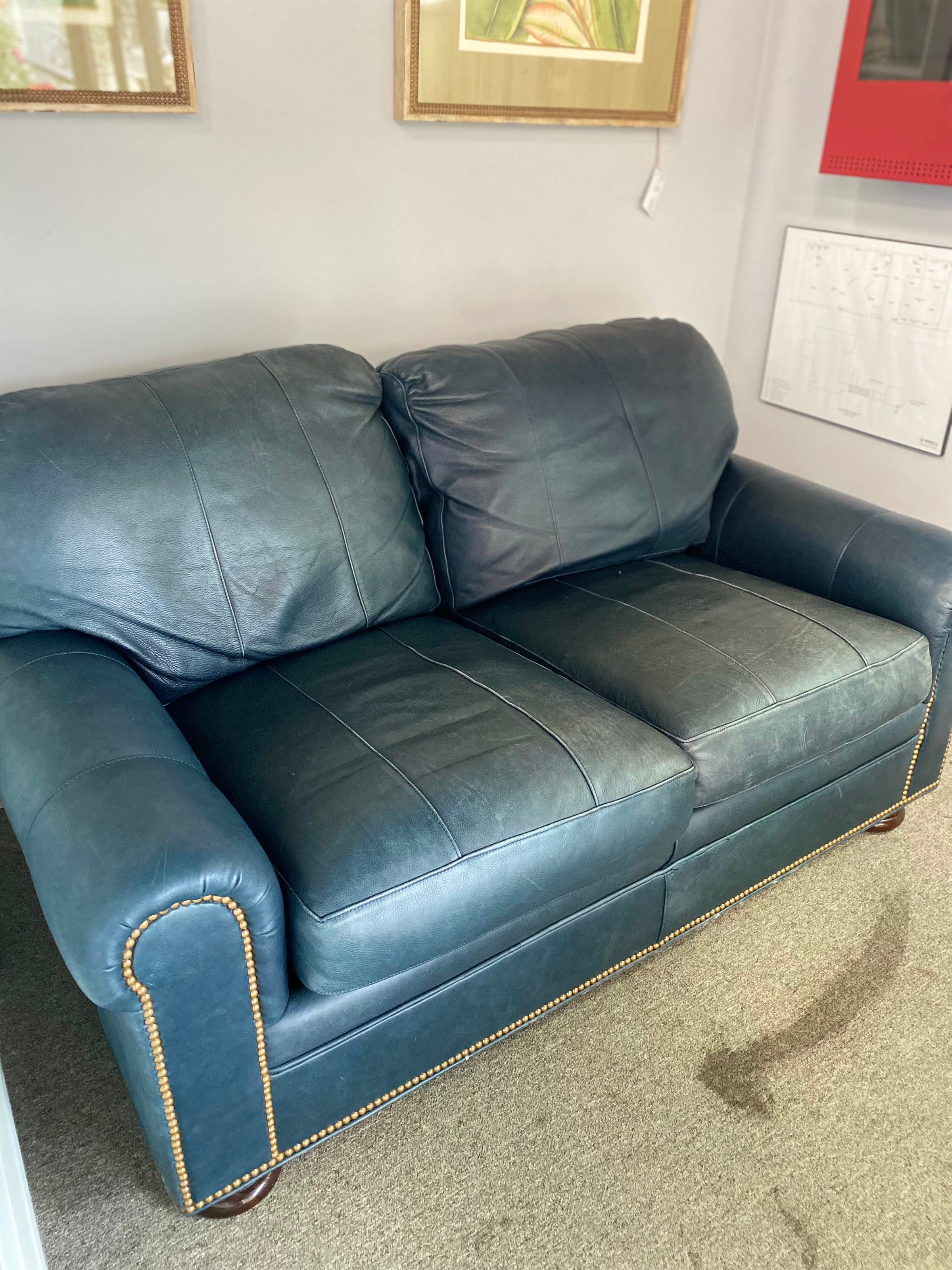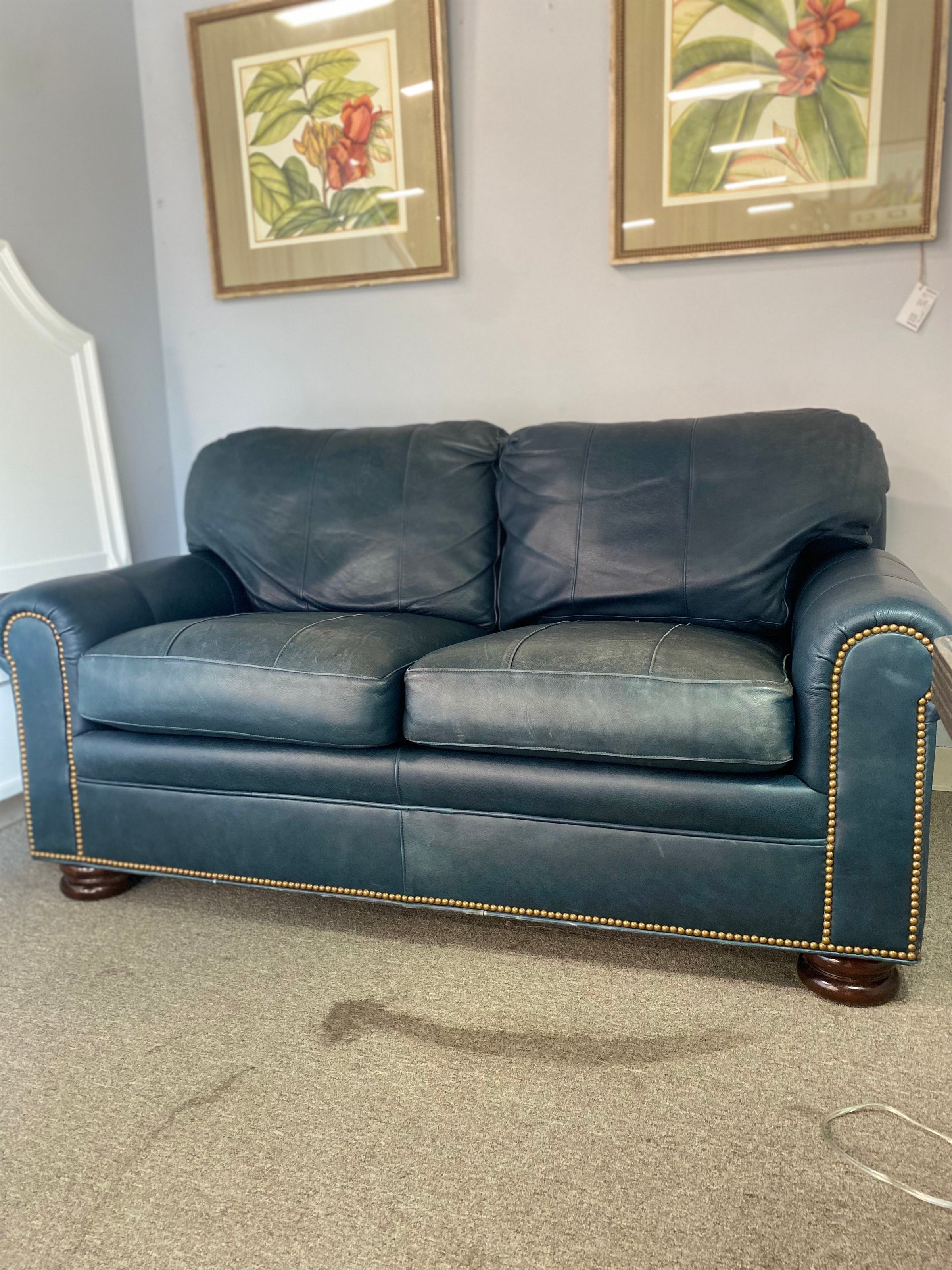 Hancock and Moore Love Seat Leather w/ Nailhead Trim