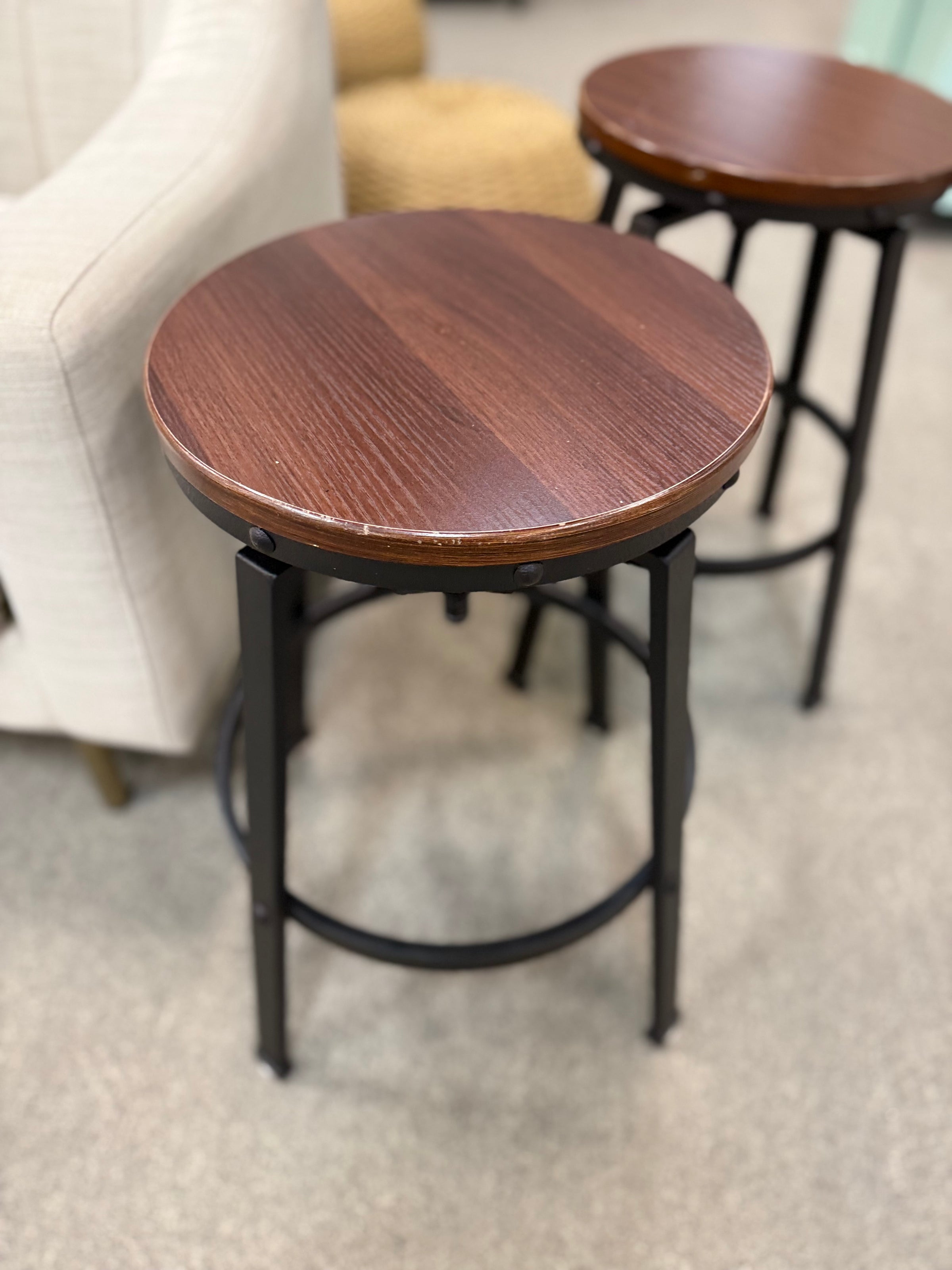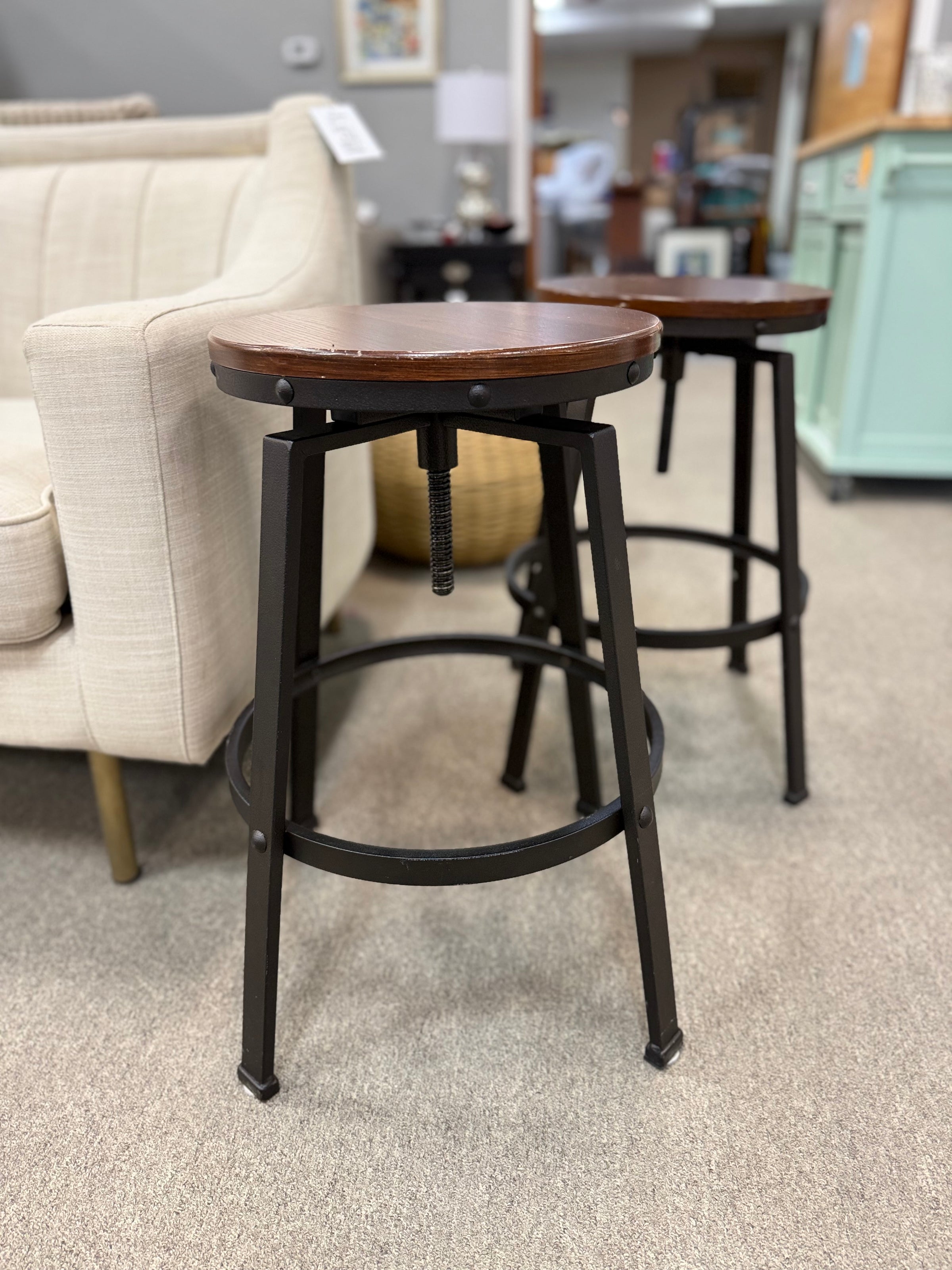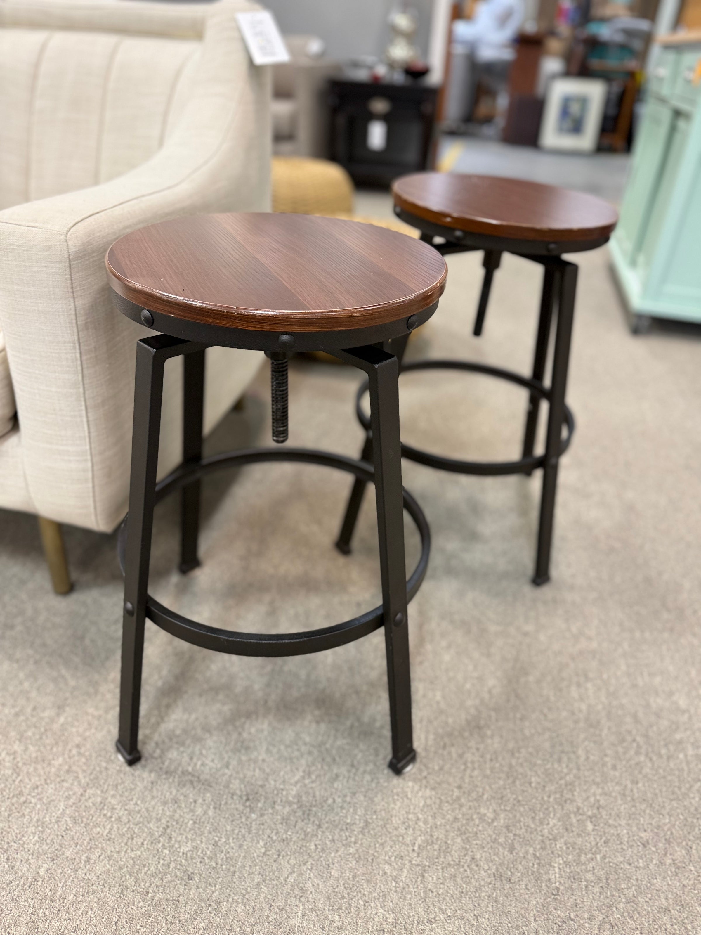 Adjustable Swivel Stools Wood & Metal